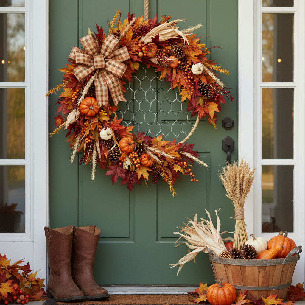 O anel decorativo de metal não é apenas um destaque visual, mas também oferece diversas opções de design. É revestido de ráfia e possui estrutura em tela de arame fino, que serve de base perfeita para outros elementos decorativos como flores secas, fitas ou flores artificiais. O anel é preso por um cordão robusto, decorado com duas elegantes contas de madeira que completam o design geral.