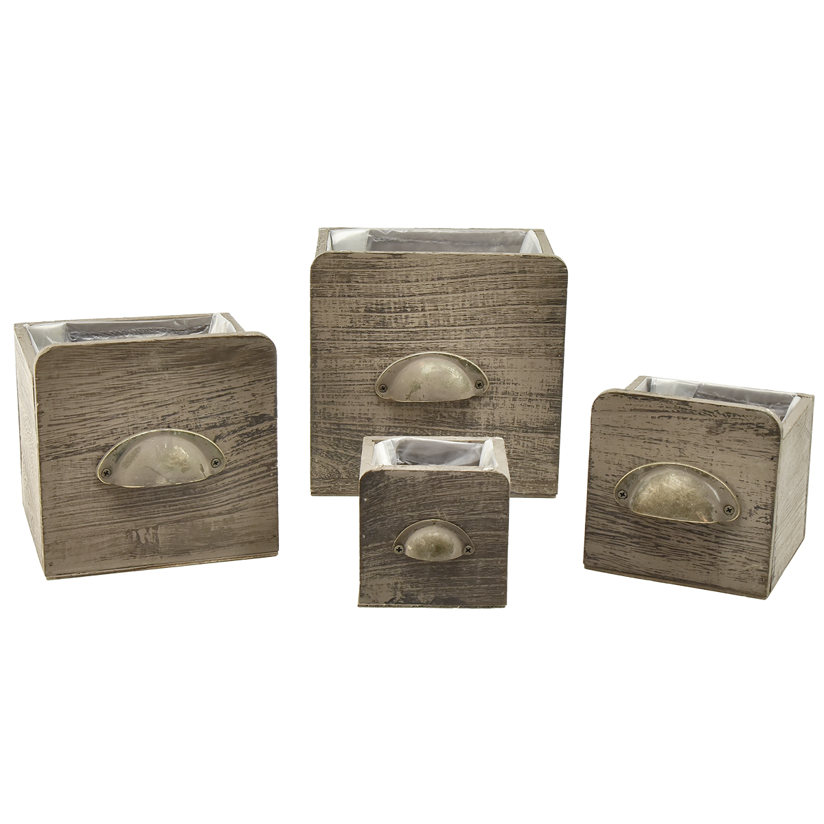 Conjunto de gavetas de madeira com puxador, limpeza marrom - arrumação rústica, conjunto de diversos tamanhos, 4 peças