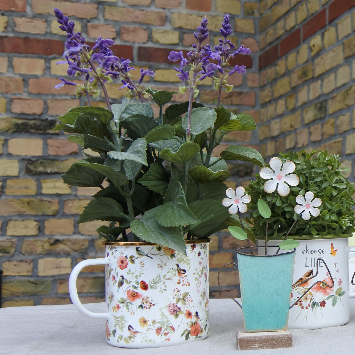 O design vintage das canecas de metal definitivamente tem um charme nostálgico. Claro, ideias criativas de decoração com plantas secas ou artificiais também podem ser implementadas na caneca esmaltada para plantio.