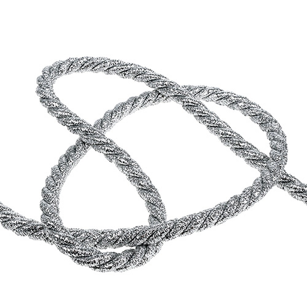 Ou você pode amarrar as cortinas da sala de estar artisticamente na extremidade inferior com este cordão de prata e, assim, complementar a decoração da sua casa. Mas você também pode enrolá-lo em um palito de vime, amarrar um fio para pendurar e usar tudo como base para uma placa de porta, um cabide para chaves ou como um cabide para fotos.