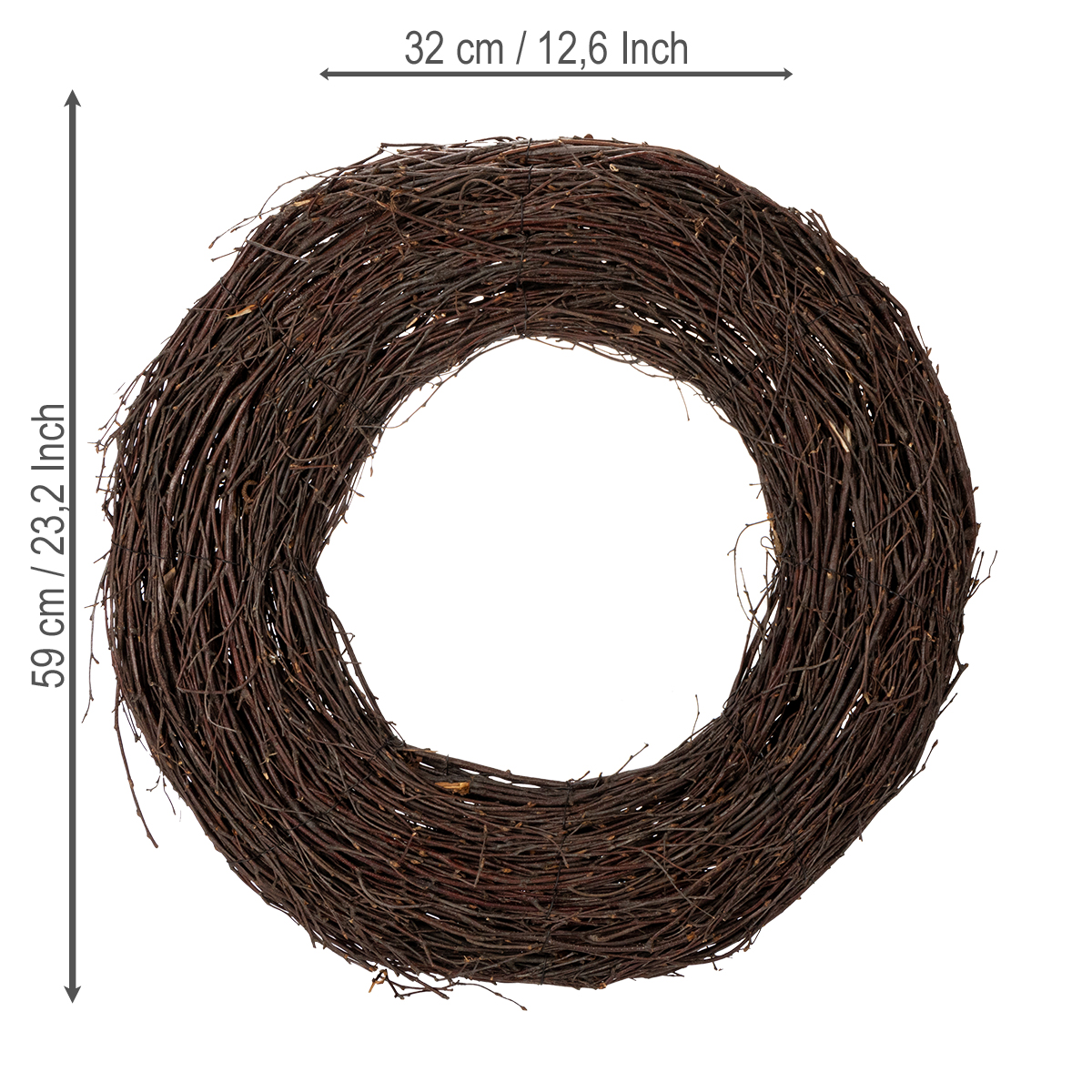 Coroa decorativa clássica de salgueiro para arranjos criativos, 59 cm