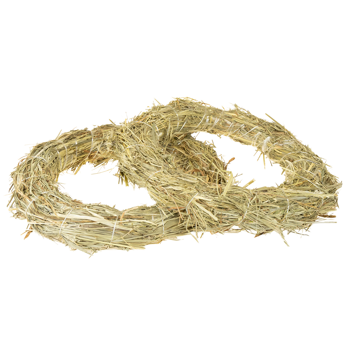 As guirlandas de feno são amarradas juntas em um conjunto de 5 e podem, claro, ser removidas individualmente. As próprias guirlandas são amarradas com um pequeno fio de plástico depois de enroladas à mão e têm um diâmetro externo de aproximadamente 21 a 22 centímetros. O diâmetro interno é de aproximadamente 13 centímetros, enquanto cada guirlanda tem aproximadamente 4 centímetros de altura.