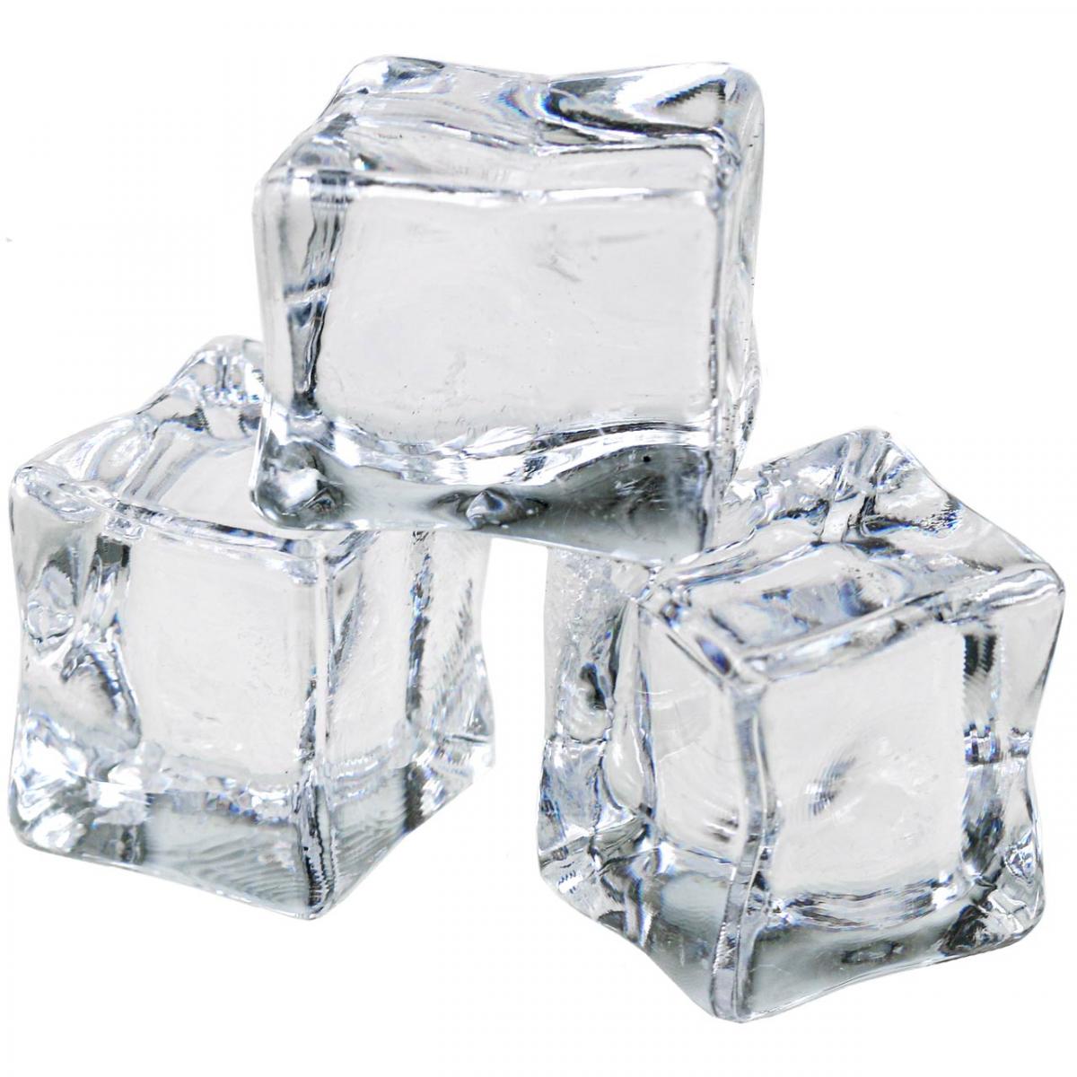 Esses cubos de gelo artificiais são feitos de plástico e não podem ser distinguidos dos reais em termos de forma e textura. Assim como os cubos de gelo que já derreteram um pouco, eles também têm cantos e bordas arredondadas.