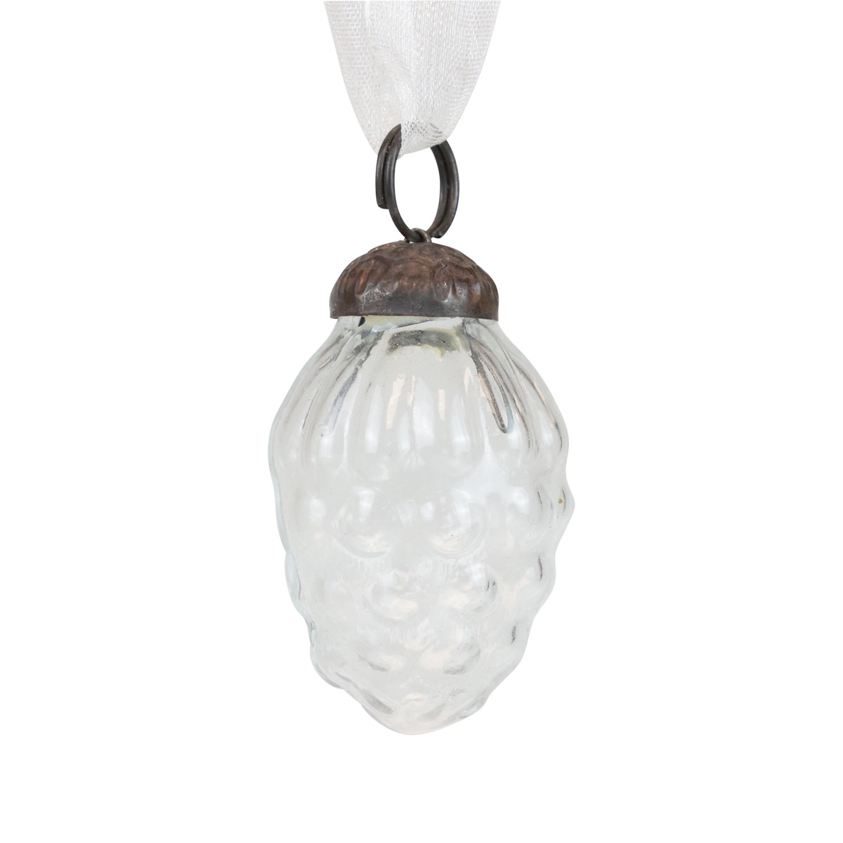 Os cones de vidro têm o formato de uma bolota. Mas a estrutura em forma de botão da decoração de vidro torna essas decorações de Natal de vidro claramente reconhecíveis como cones de vidro.