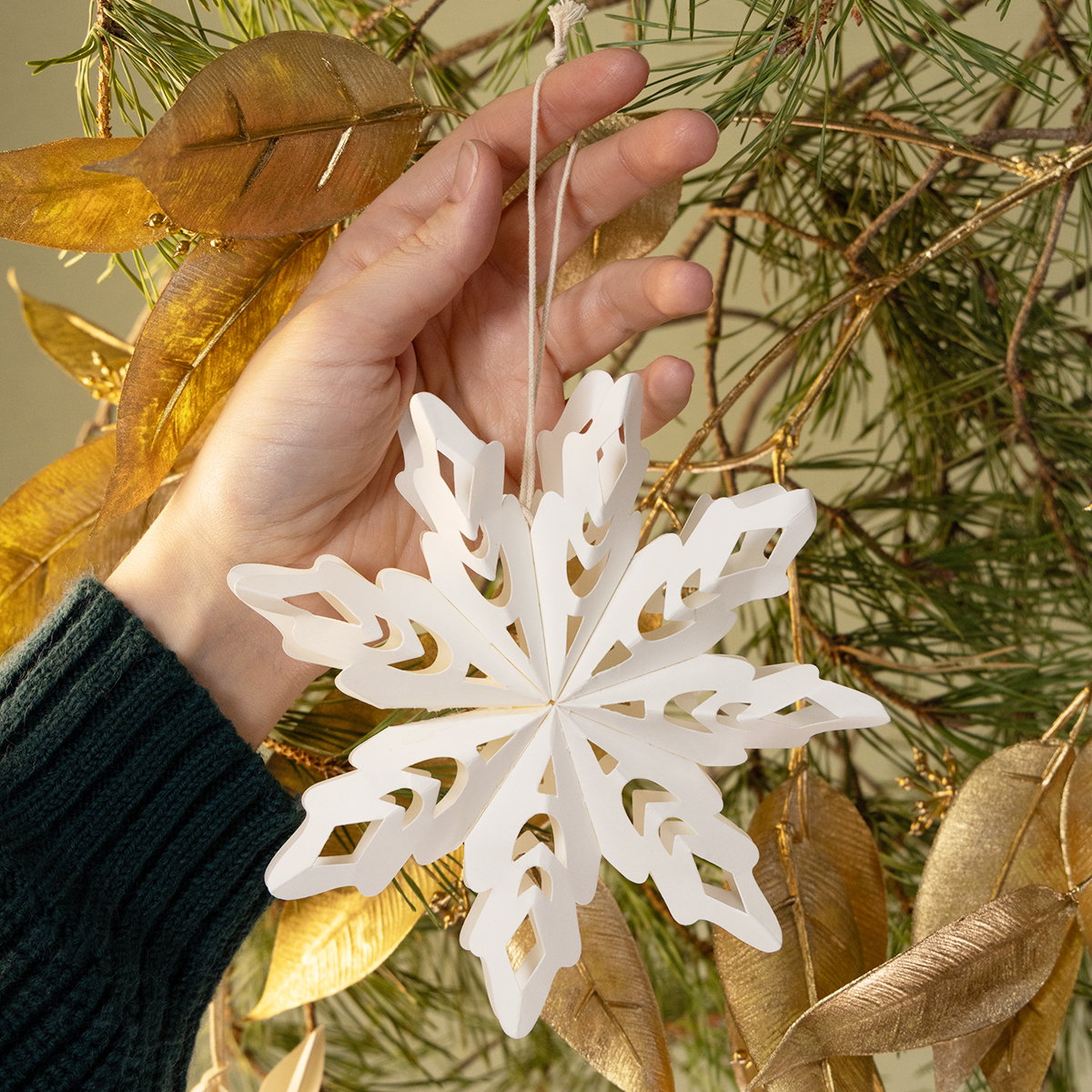 O Natal é época de decoração! E o que poderia ser mais encantador do que delicados flocos de neve de papel brilhando em árvores, janelas ou galhos de pinheiro? Estes flocos de neve de papel branco combinam a leveza do inverno com o charme escandinavo e minimalista. A escolha perfeita para quem deseja trazer um toque de natureza e elegância para casa! Seja na janela, como enfeites de árvore de Natal ou sobre a mesa festiva, estes delicados flocos de neve de papel criam uma atmosfera mágica.