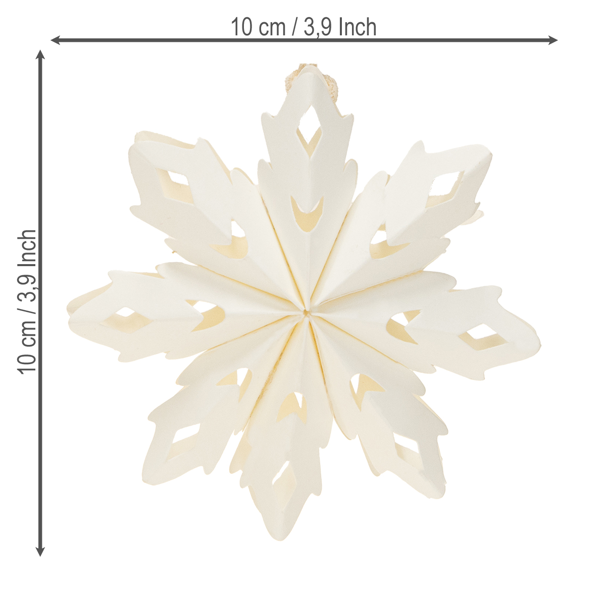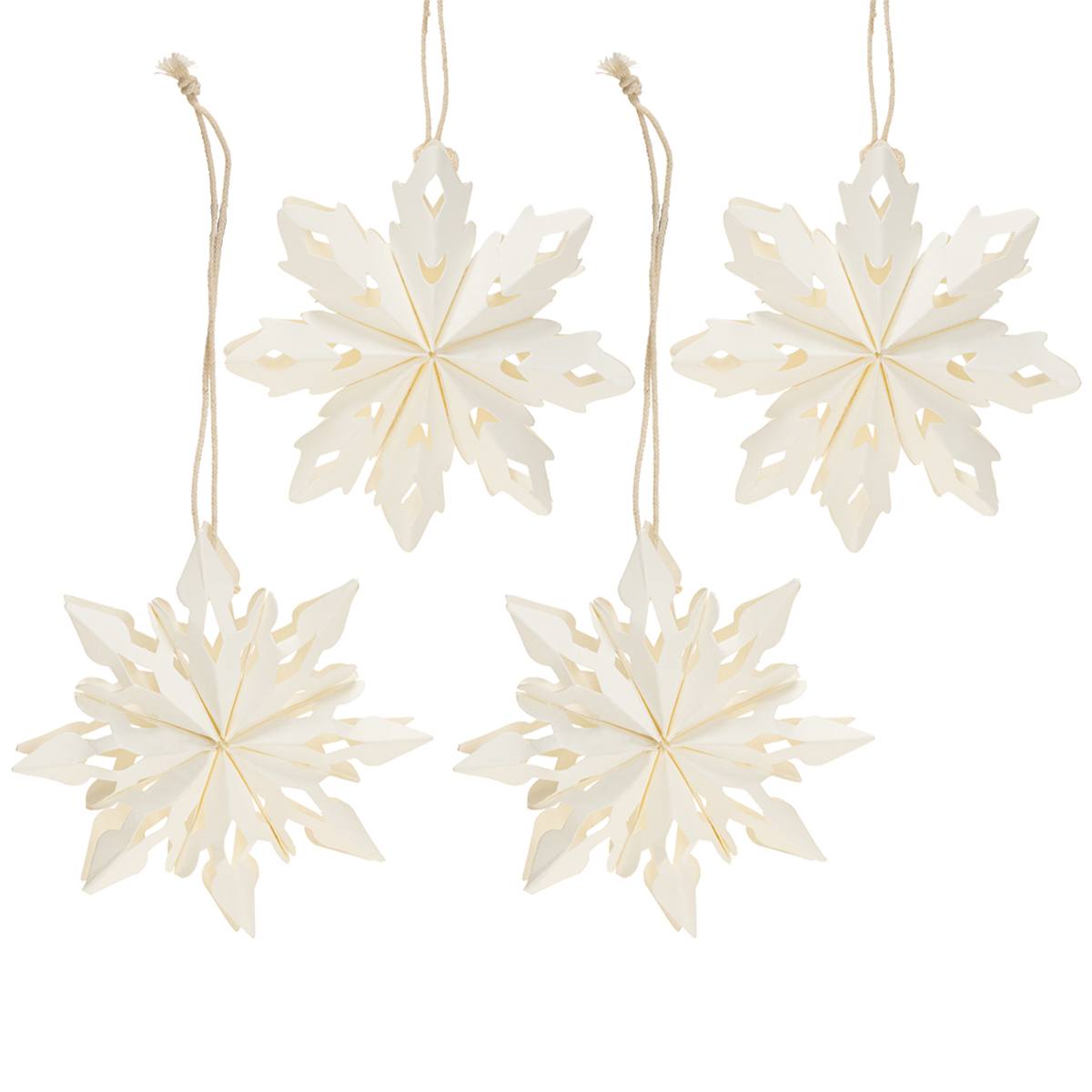 Decorações de papel em formato de floco de neve para pendurar, brancas, 10 cm, 4 peças.