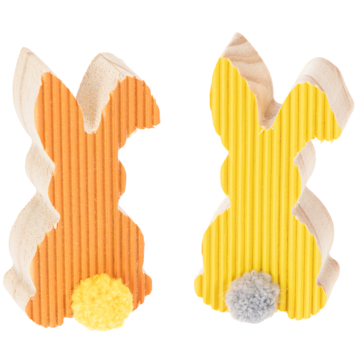 Decorações de Páscoa em madeira com coelhinhos, amarelo e laranja, 4x8cm, 6 peças.