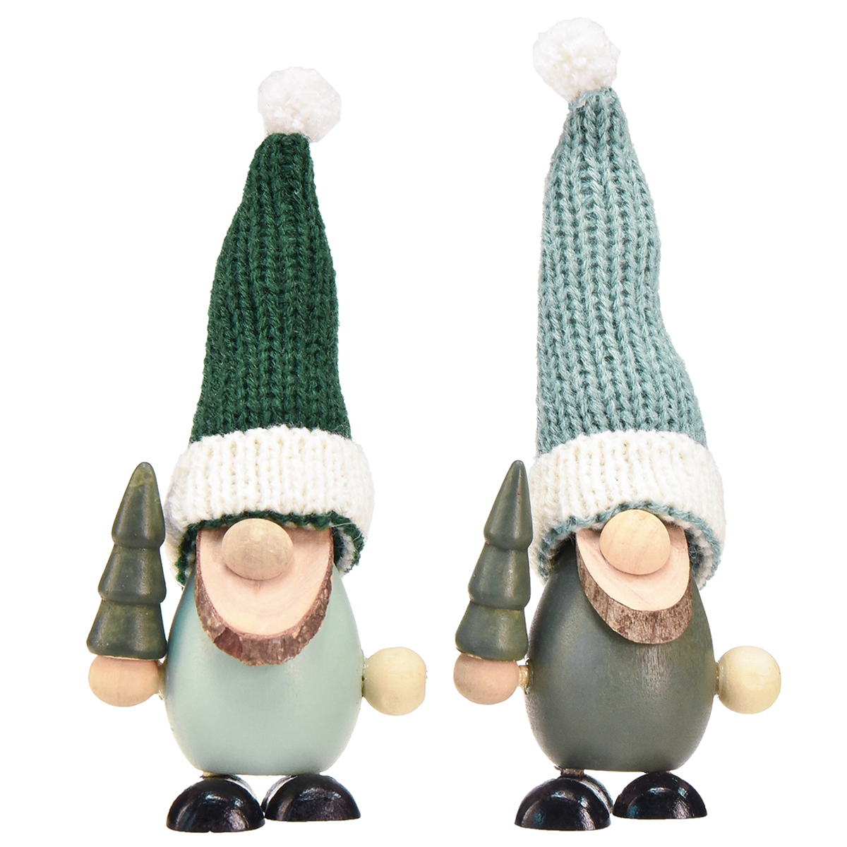 - Gnomos decorativos de Natal em madeira verde menta - 2 sortidos
