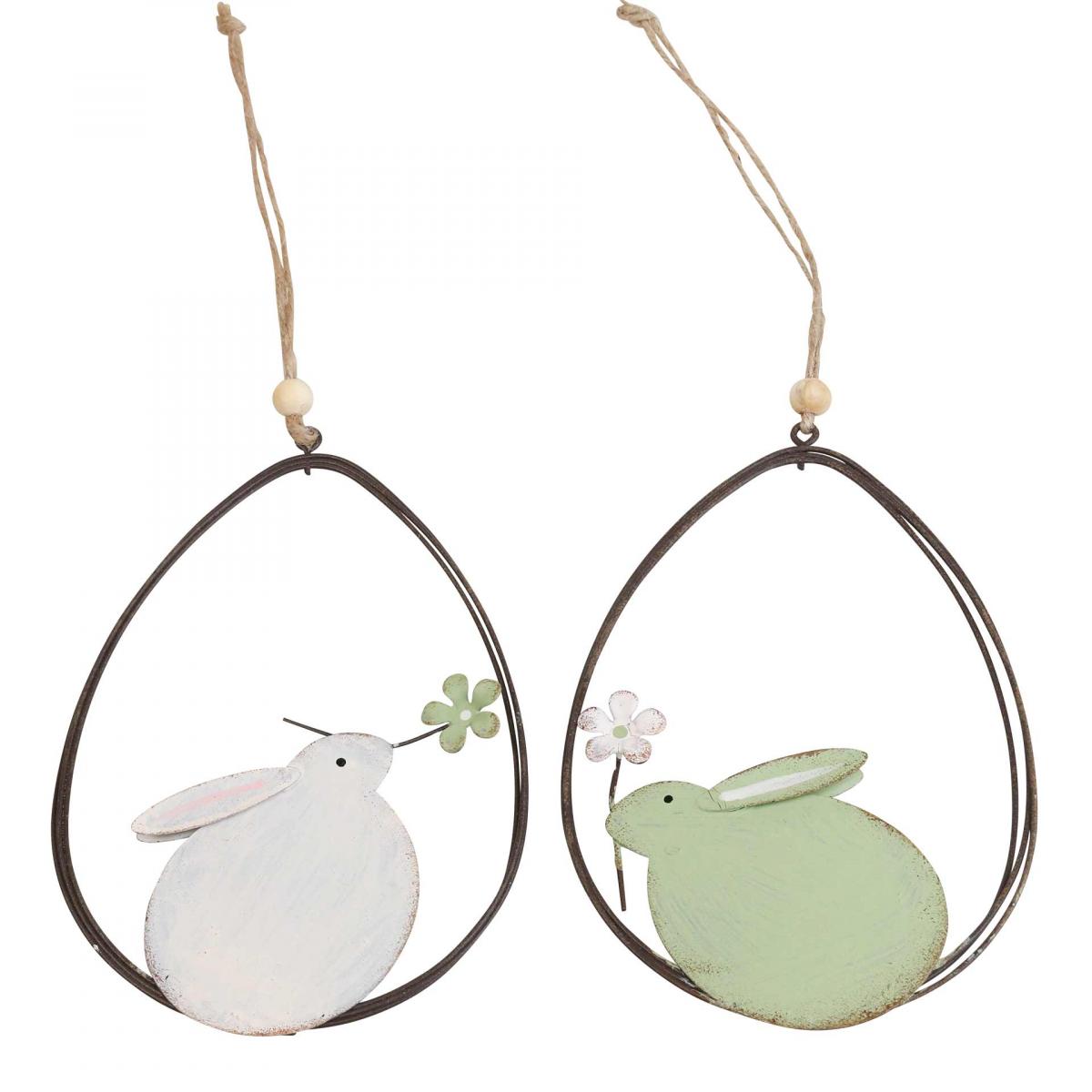 Decoração de janela, coelhinho da Páscoa de metal, decoração de suspensão Páscoa 15cm 4pcs verde branco