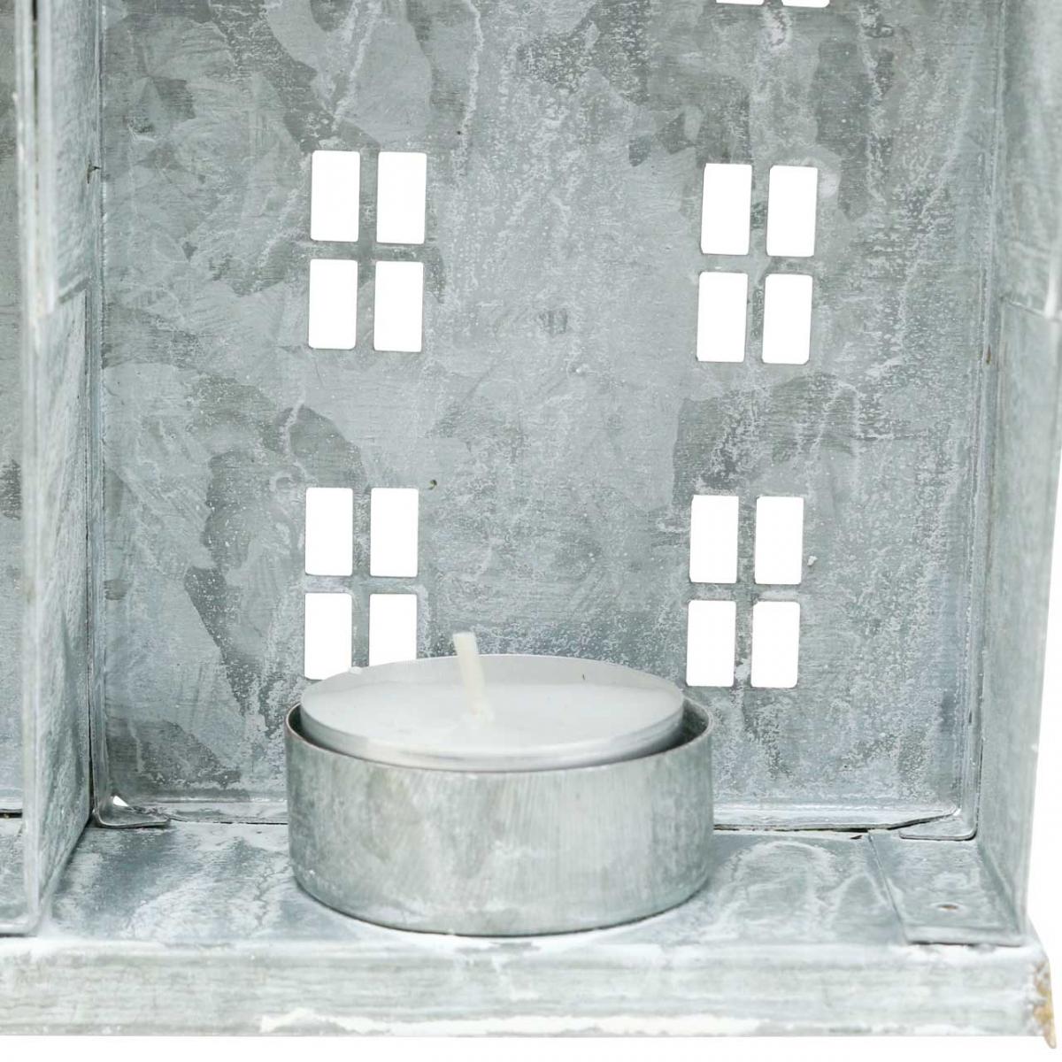 Decoração de janela de Natal, lanterna, série de casa diorama, decoração de metal prata gasto chique L20cm H20cm