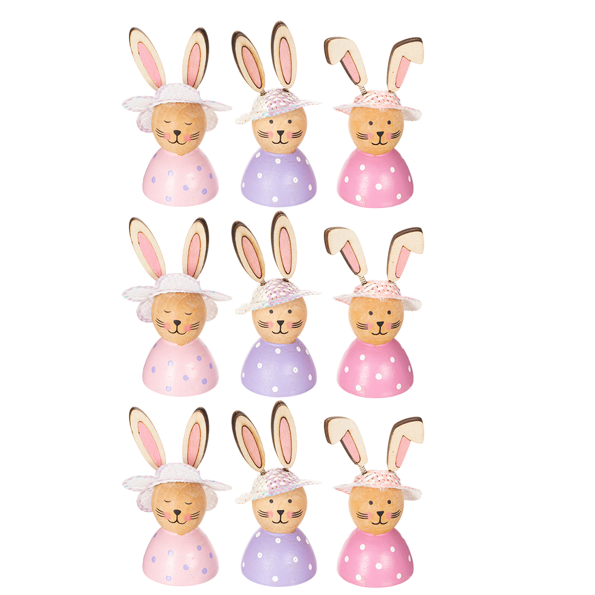 Decoração de mesa com coelhinhos da Páscoa para a primavera, coelhinhos decorativos com chapéus, 7 cm, 9 peças