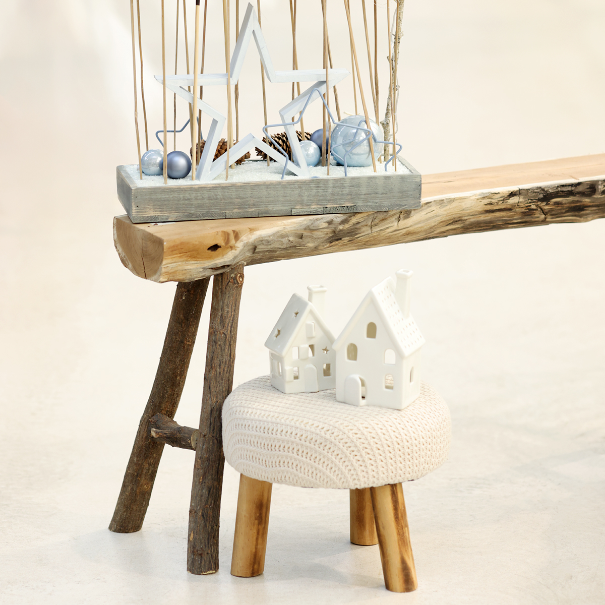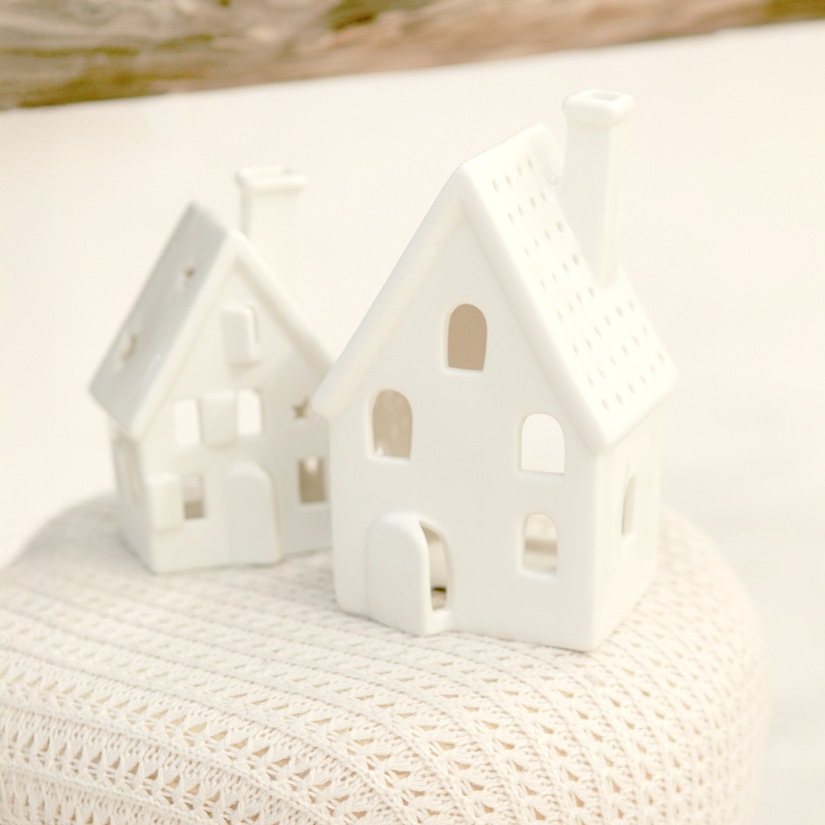 Devido ao seu design simples, a casa da lanterna decorativa é tão adequada para decorações modernas de Natal quanto para uma mesa do Advento com design nostálgico. Uma pequena luz de chá é suficiente, e a casa de cerâmica parece muito caseira. A luz das velas brilha em todas as janelas da casa decorativa e permite que pequenas e aconchegantes luzes brilhem sobre a mesa.