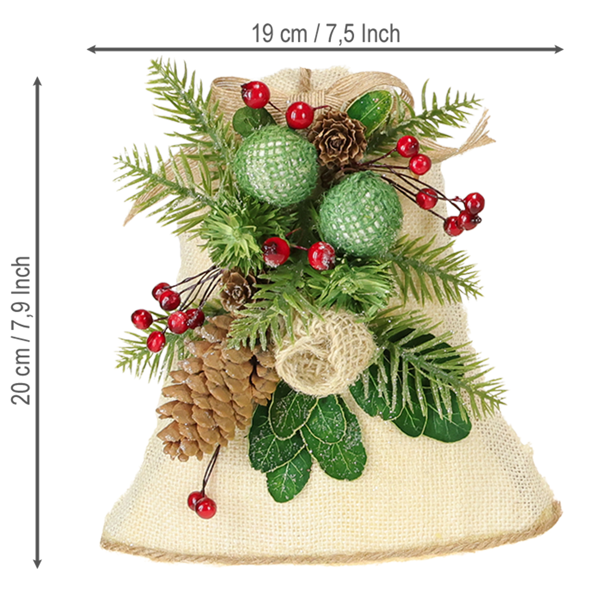 Decoração de parede natalina, sino, juta, sortida, 20 cm de altura, 2 peças