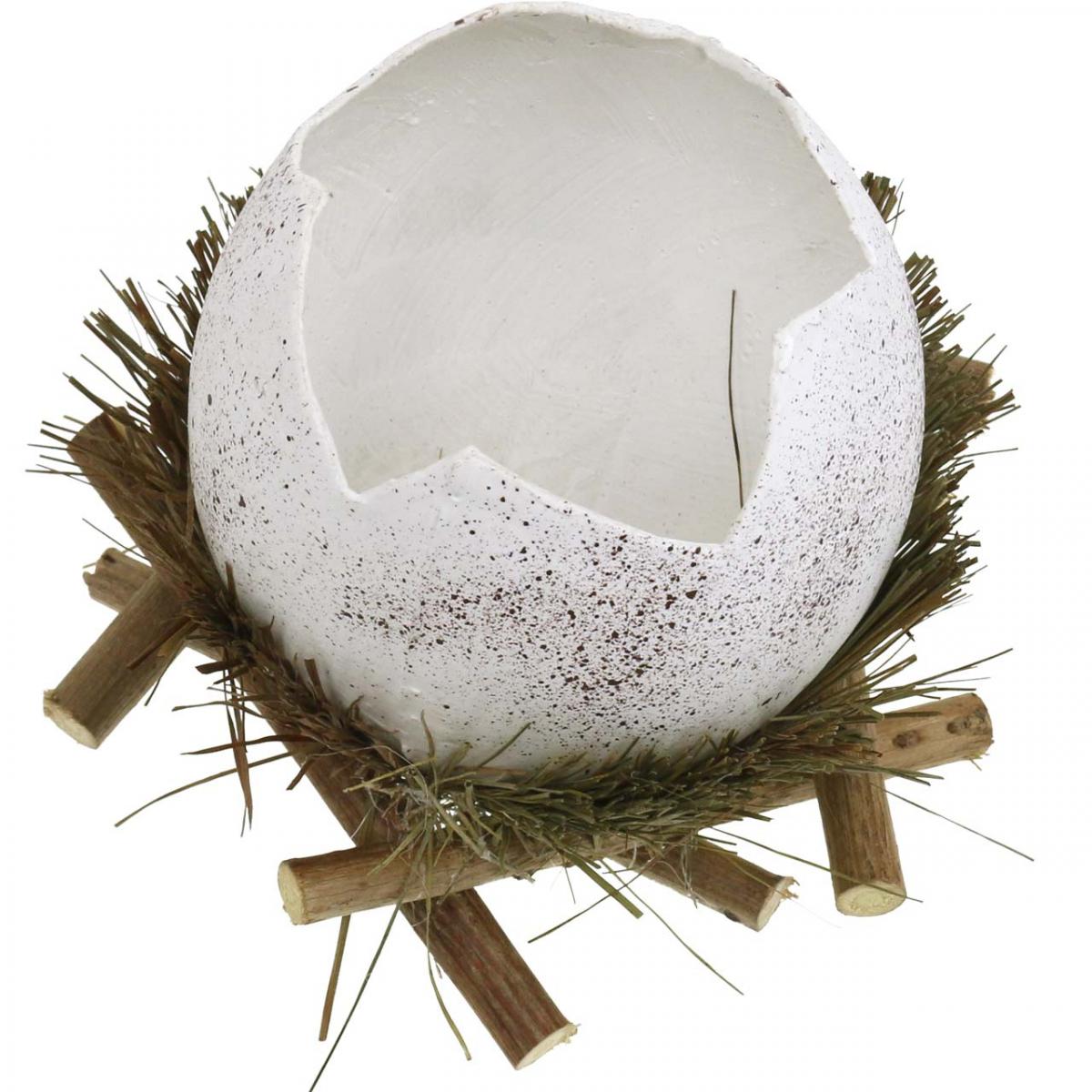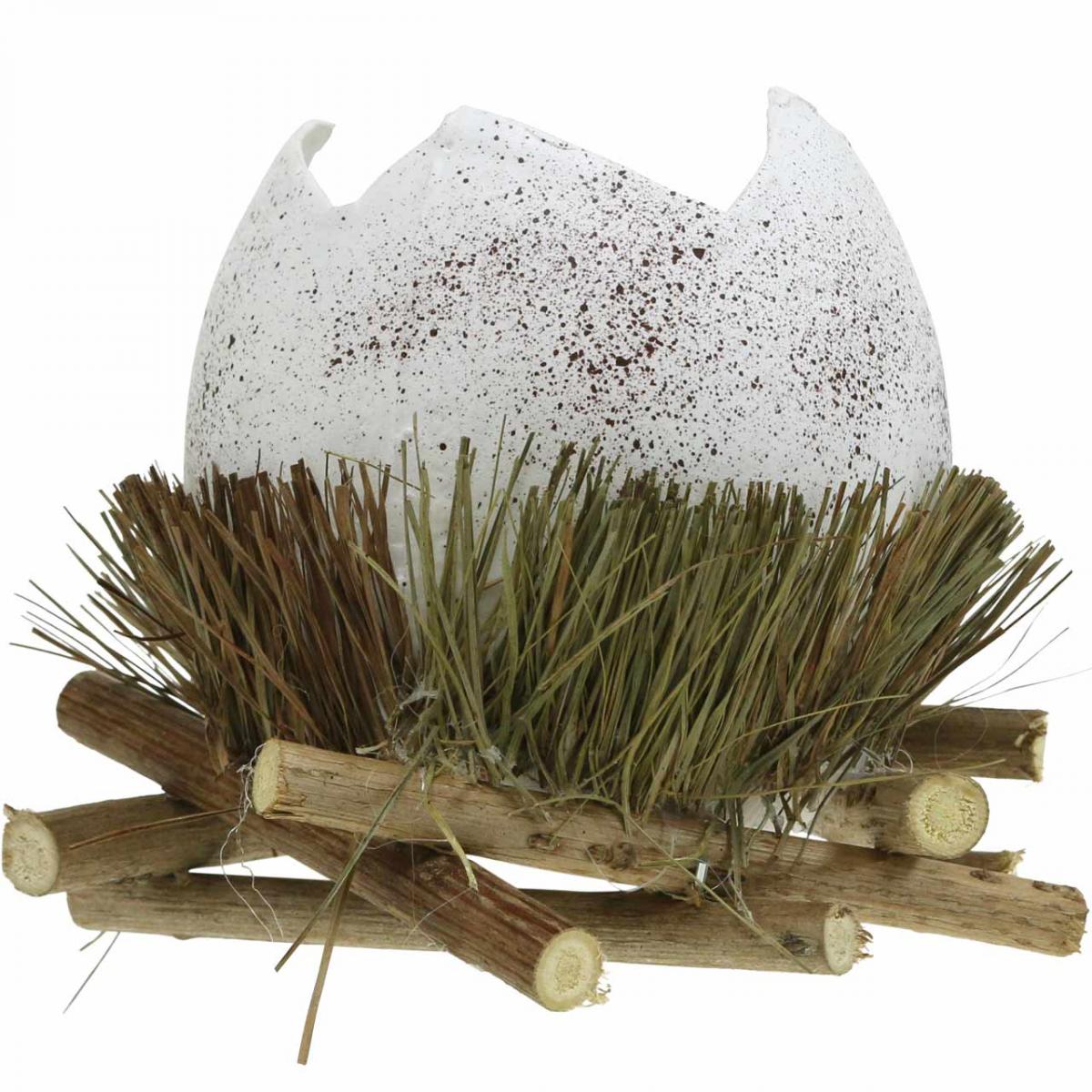 Decoração de Páscoa, ovo em ninho, ovo decorativo, ninho de pássaro Ø9cm A10cm Branco, cores naturais 4 peças
