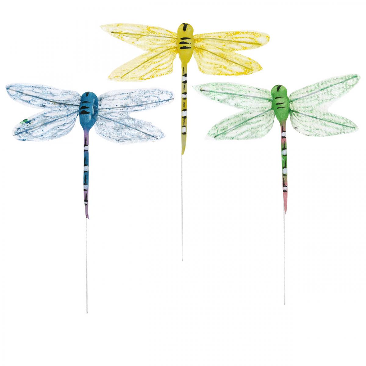 Decoração de verão, libélulas em arame, insetos decorativos amarelo, verde, azul L10,5cm 6 unid.