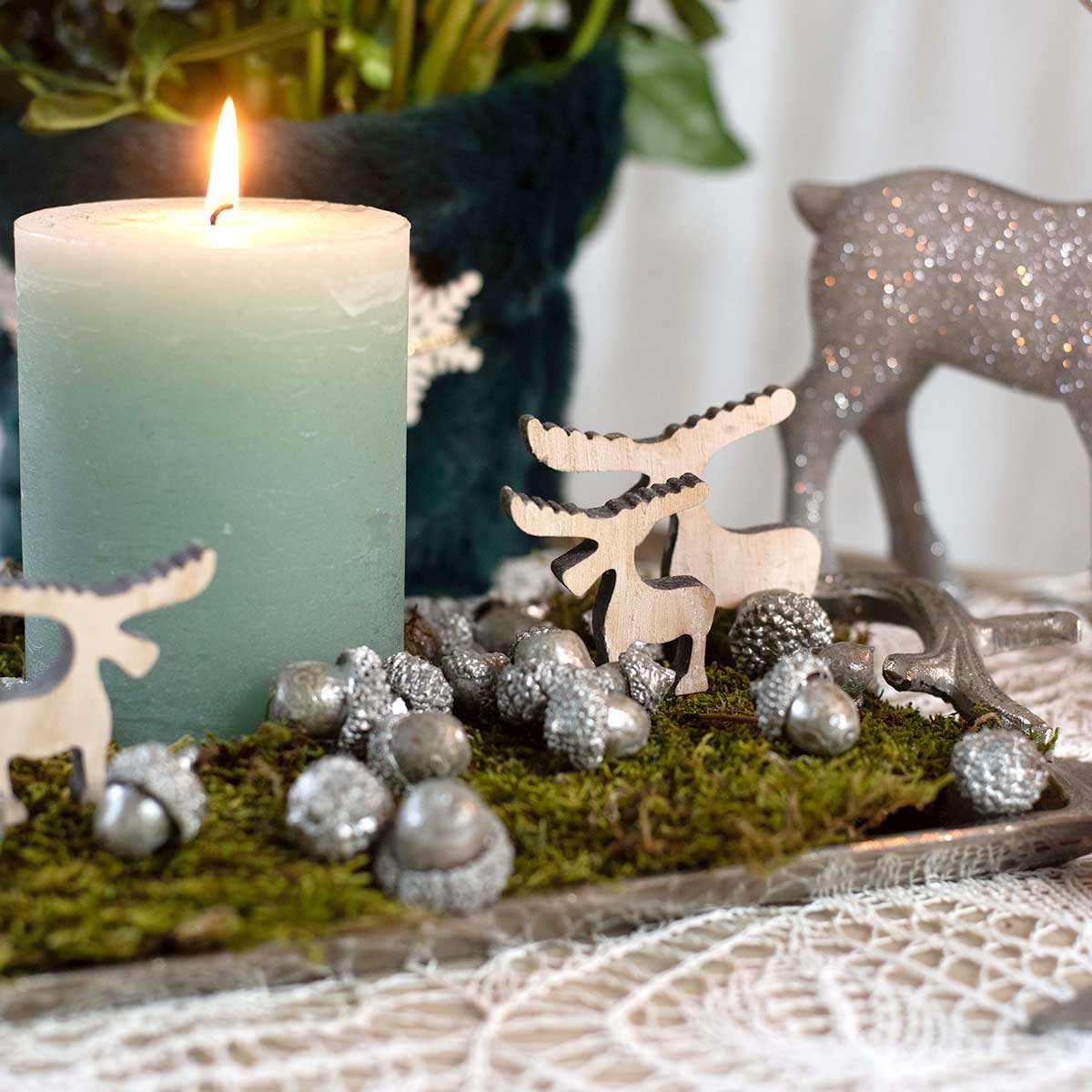 Decoração dispersa de alce de madeira, decoração de mesa, advento caiado 30 unidades