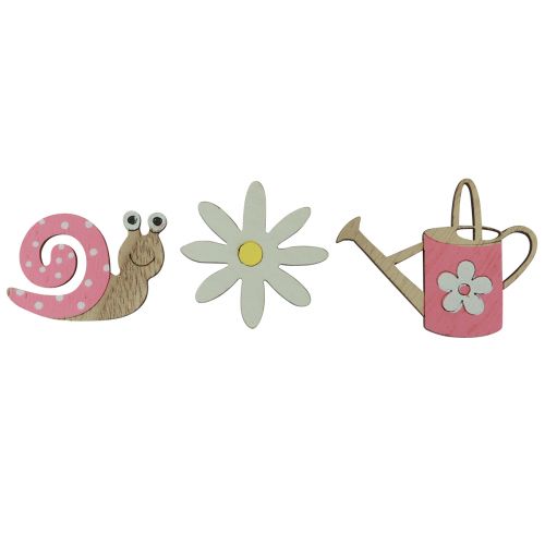Nome do produto: Decoração dispersa flores de madeira caracóis regador rosa 4cm 36 un