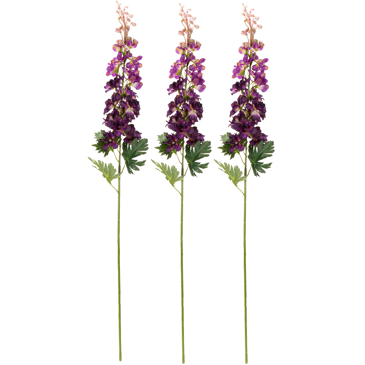 Delphinium decorativo, flor artificial para um toque floral elegante, 79 cm, 3 peças.