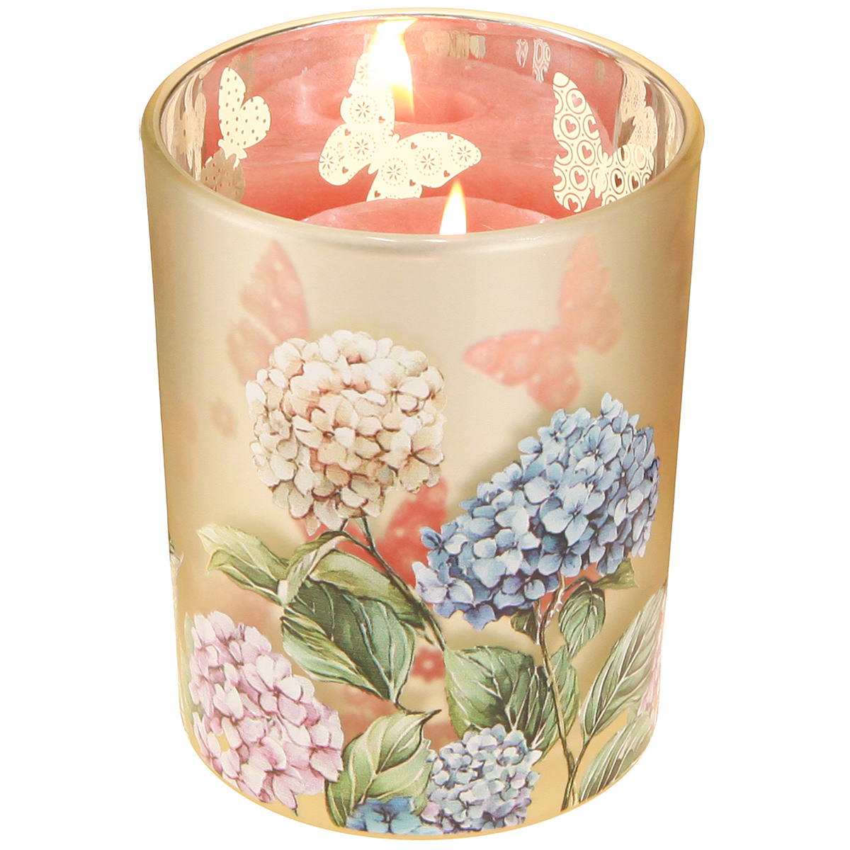 O delicado motivo de hortênsia em suaves tons pastel de rosa, azul e bege é particularmente marcante e realça o estilo elegante do castiçal. Ele se integra facilmente a diversos estilos de decoração de interiores – seja rústico, shabby chic ou boho moderno. Acomode-se e desfrute de momentos encantadores de luz que criam pequenos oásis de felicidade no seu dia a dia!
