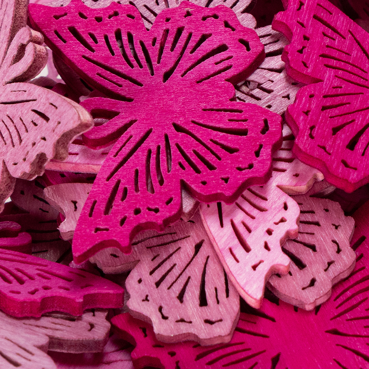 Estas borboletas decorativas, feitas de madeira nobre, têm 4 cm de diâmetro e vêm numa prática embalagem com 72 unidades. Suficiente para decorar várias mesas, tigelas ou até arranjos maiores. A paleta de cores em tons de rosa, rosa-claro e lilás é delicada e primaveril – um verdadeiro destaque que não é nem extravagante nem monótono. Quem prefere um visual mais natural vai adorar a madeira de grão fino e o delicado design das asas. As borboletas combinam especialmente bem com estilos de decoração modernos e clássicos, mas também ficam lindas em ambientes shabby chic ou rústicos.
