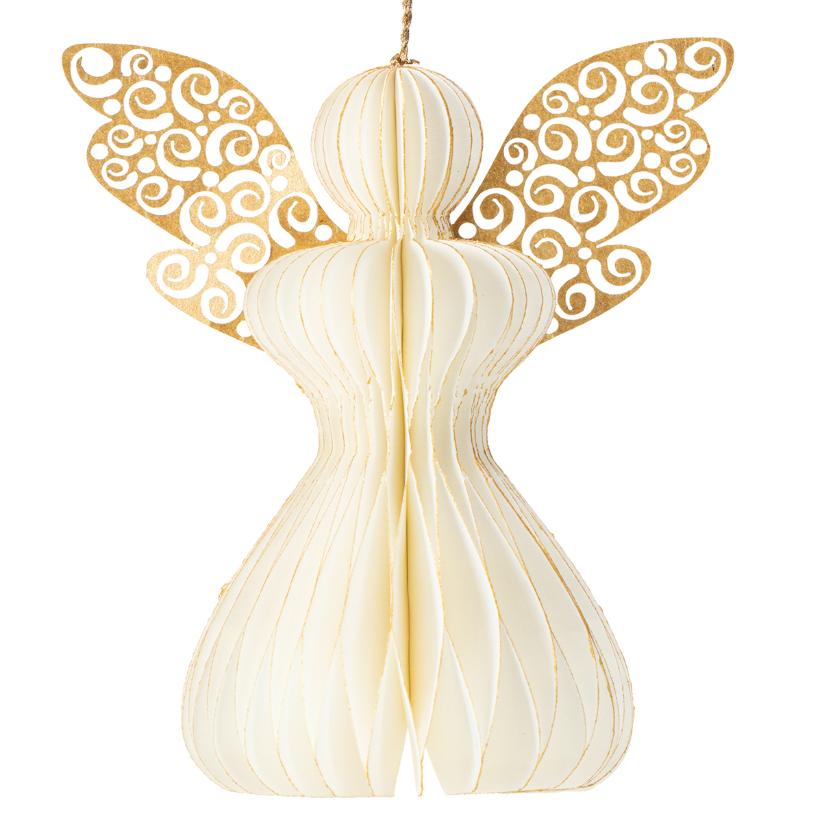 Características especiais do anjo de papel para decoração de árvores e guirlandas de Natal.
