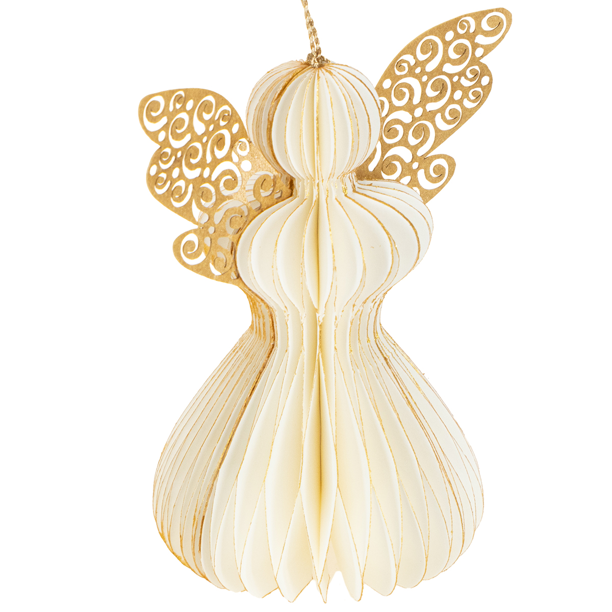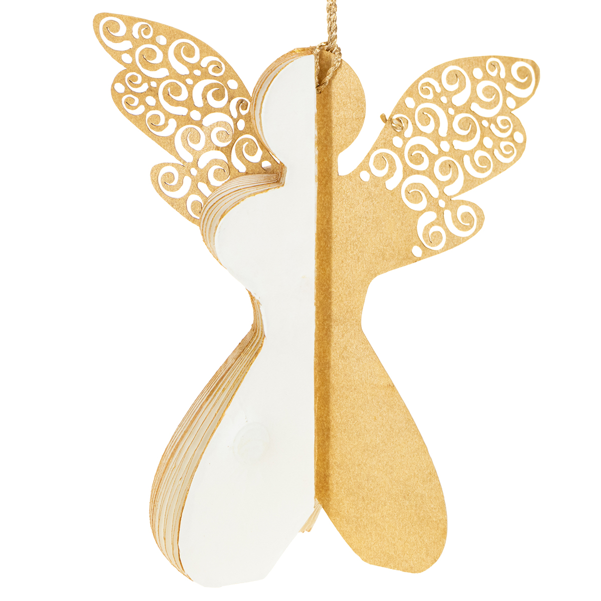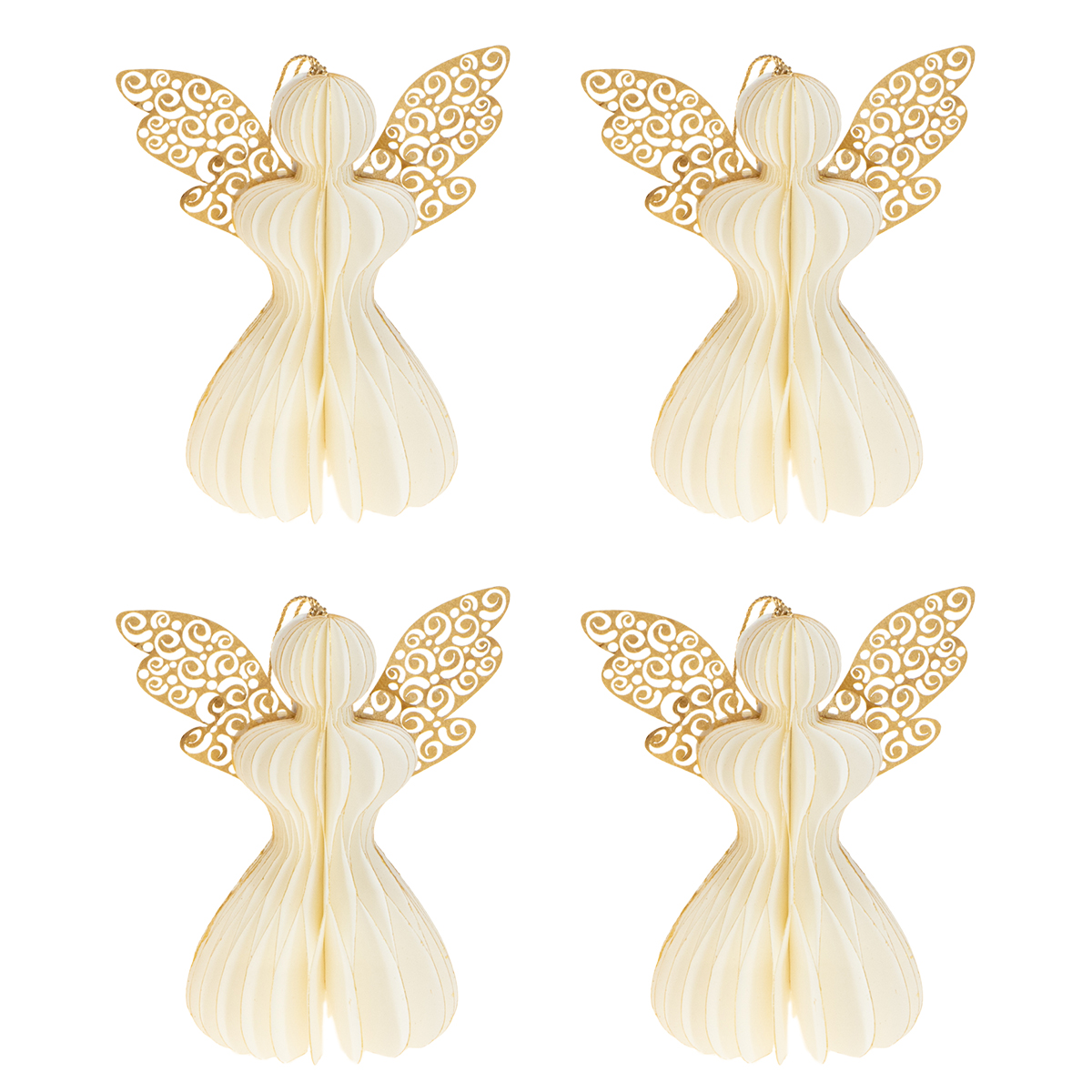 Enfeites de anjo de papel para árvore de Natal, pingentes de anjo, branco e dourado, 12 cm, 4 peças.