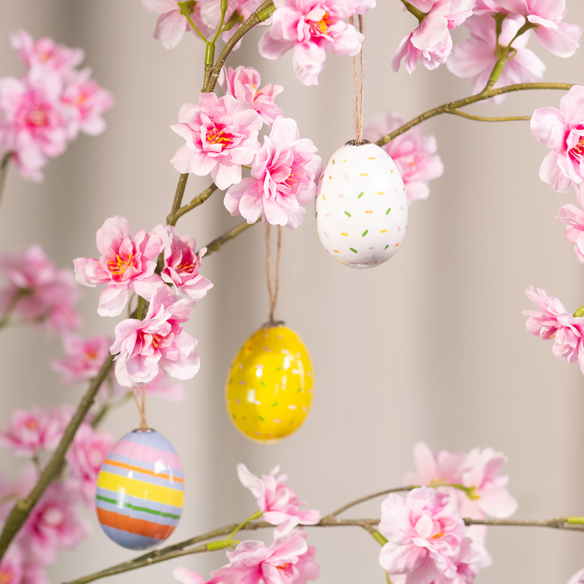 A Páscoa é época de decoração! Os primeiros raios de sol anunciam a primavera e despertam o desejo de enfeitar nossas casas e jardins. O que seria da Páscoa sem uma árvore decorada com carinho ou um buquê festivo? Estes enfeites coloridos em formato de ovo de Páscoa darão um toque alegre instantâneo à sua casa. Disponíveis em cores vibrantes de primavera e estampas alegres, são um destaque versátil que não só fica lindo na árvore de Páscoa, como também chama a atenção em mesas, janelas ou em projetos criativos de faça você mesmo. Principalmente à medida que a natureza desperta lentamente, a alegria dos pequenos detalhes delicados se torna ainda maior – e estes práticos enfeites de 6 cm são indispensáveis. Basta pendurá-los e eles espalharão a alegria da Páscoa. Perfeito, não é?