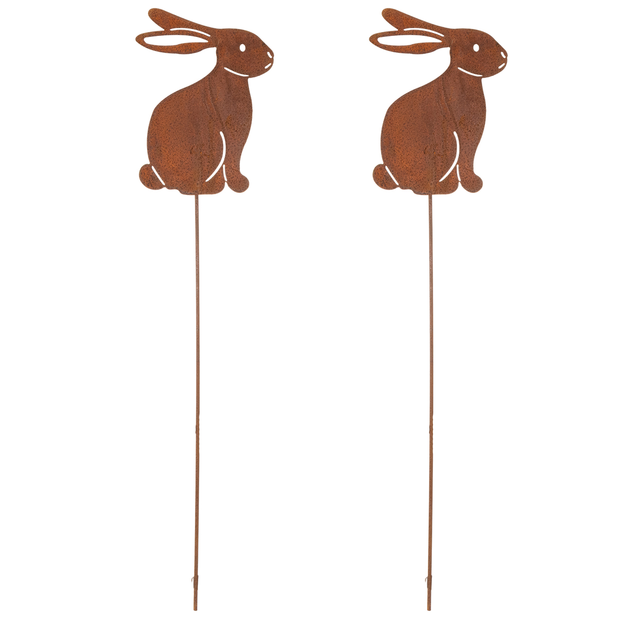 Estaca de jardim em forma de coelho da Páscoa, feita de metal, para uma decoração elegante de primavera ao ar livre, 80 cm.