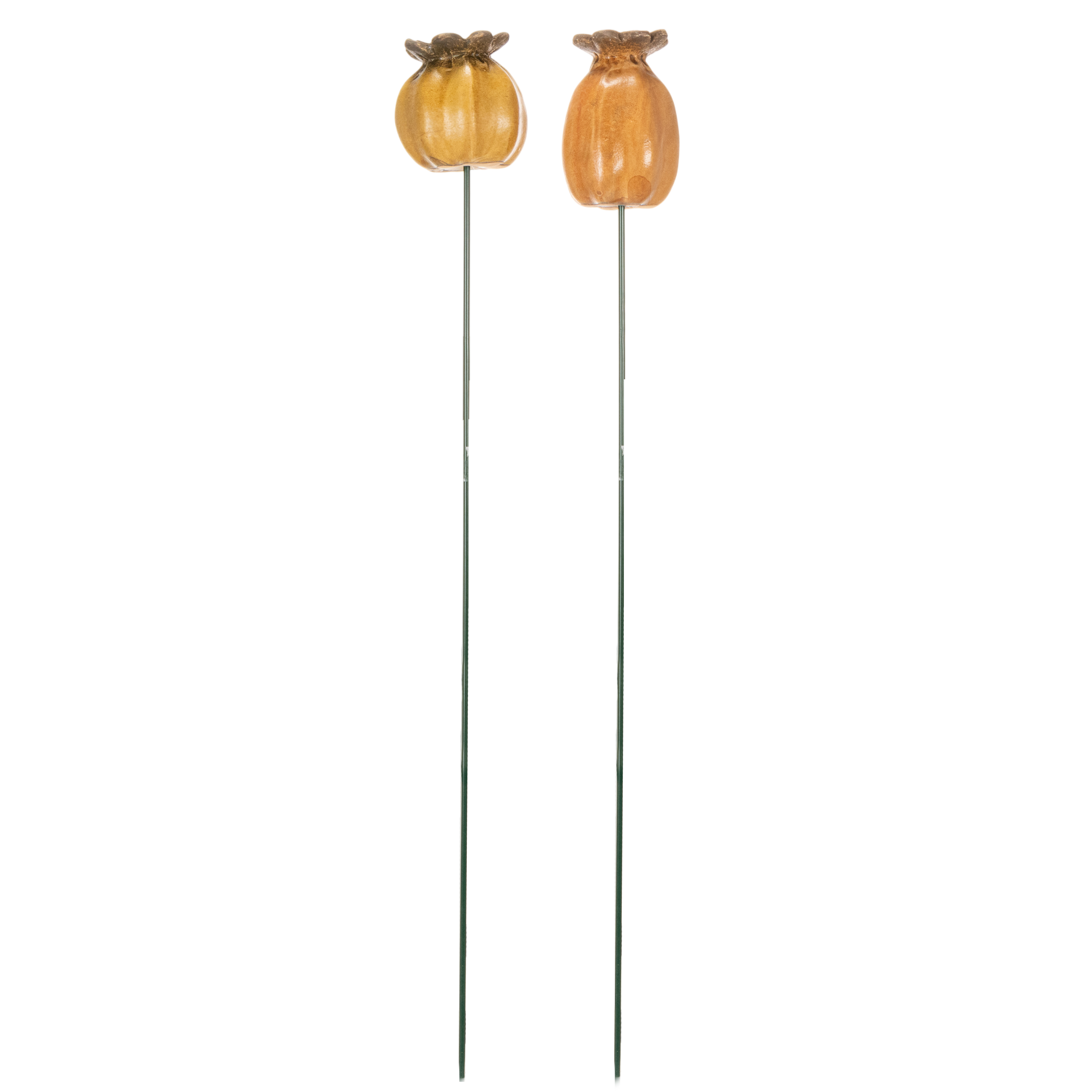Estaca de jardim em formato de cápsula de papoula para decoração elegante de jardins, canteiros ou varandas, 60 cm, 2 peças.