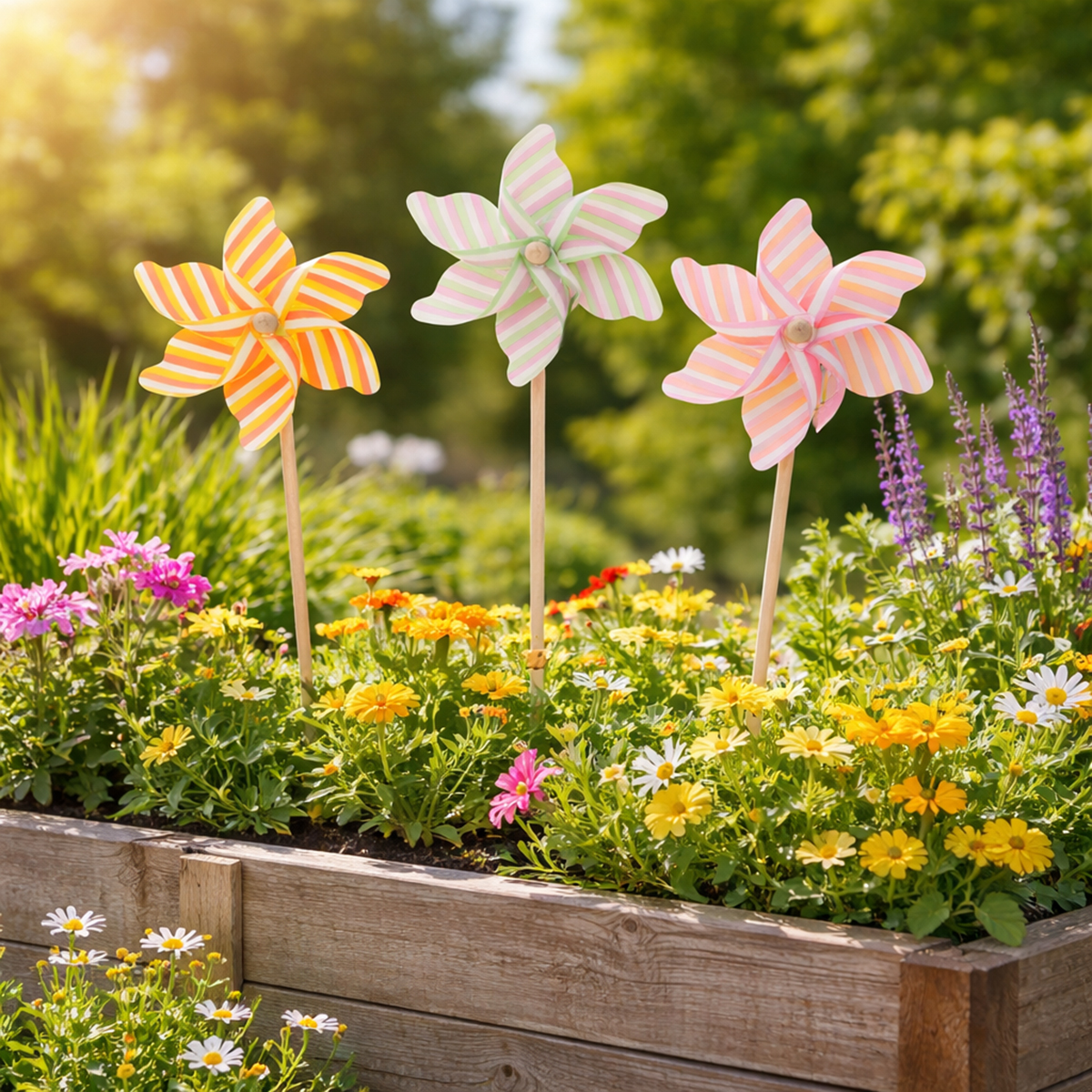 Elas ficam particularmente bonitas quando dispostas em grupos, por exemplo, perto de flores complementares como as delicadas tulipas na primavera ou os vibrantes girassóis no verão. Mas mesmo colocadas individualmente, cada moinho de vento acrescenta um toque de magia. Começam a girar até com a mais leve brisa, realçando ainda mais o seu efeito decorativo e dando ao seu jardim um ar vibrante. São, portanto, ideais para quem deseja decorar o seu espaço exterior de uma forma única e inspirada na natureza.