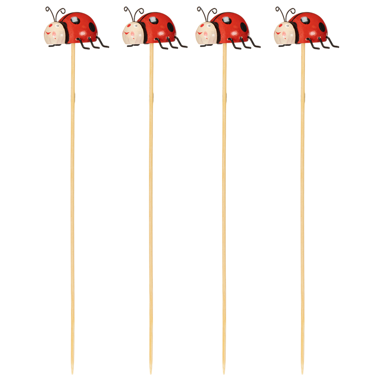Estacas de jardim em formato de joaninha, decoração para primavera e verão, enfeite de flores, 31 cm, 4 peças