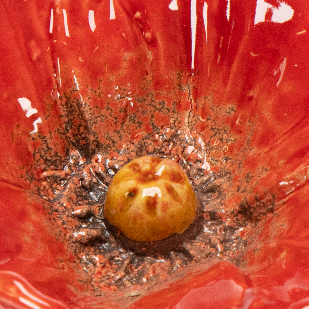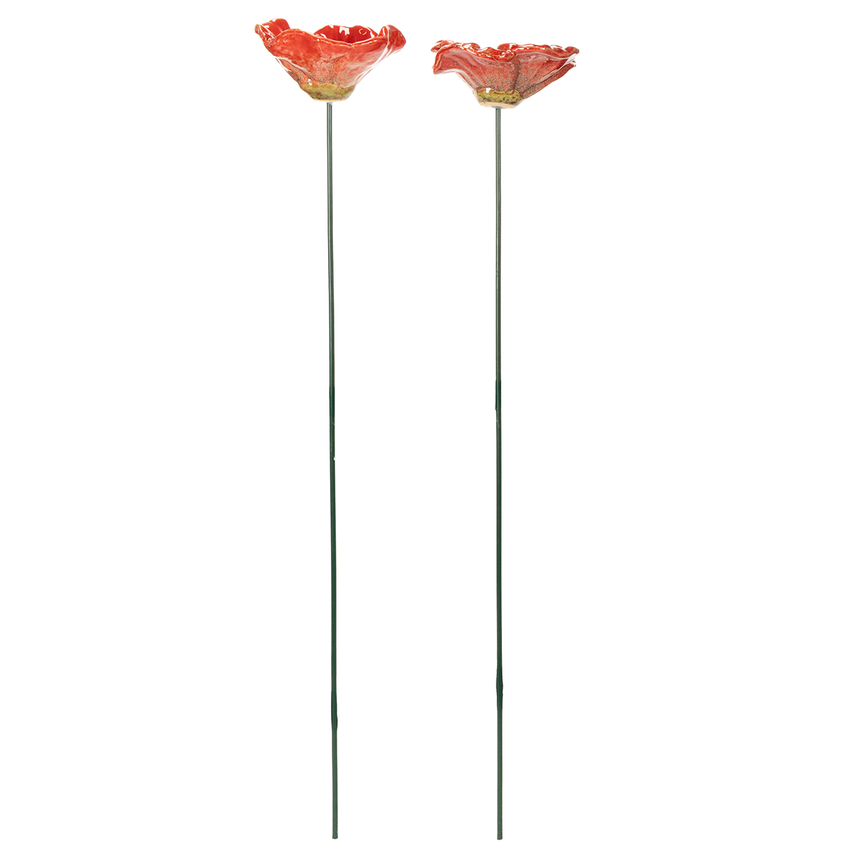 Estas estacas de jardim em forma de papoula são feitas de cerâmica de alta qualidade e impressionam pelo seu acabamento detalhado e meticuloso. As vibrantes e luminosas flores vermelhas, com um diâmetro natural de 8 cm, certamente atrairão olhares. Com 42 cm de altura, estas estacas de cerâmica integram-se perfeitamente em canteiros, bordaduras ou vasos maiores. O formato delicado das flores oferece usos versáteis, seja como um contraste sofisticado com a folhagem ou como um complemento harmonioso ao seu arranjo floral existente.