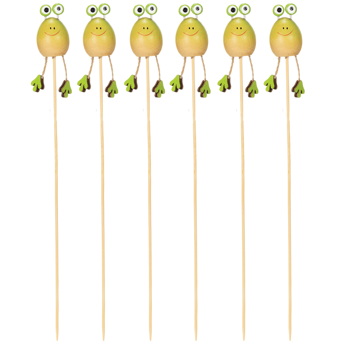 Quer dar um toque alegre ao seu jardim, varanda ou casa? Estas estacas de jardim em forma de sapo são perfeitas para adicionar um toque de humor e cor aos seus vasos, buquês e arranjos. Com suas cabeças verdes e divertidas, elas certamente farão todos sorrirem! Combinam perfeitamente com qualquer decoração de primavera ou verão, seja ao ar livre entre plantas floridas na varanda ou dentro de casa em um buquê cuidadosamente arranjado. E a melhor parte? Com estes seis sapos decorativos feitos com esmero, você pode deixar sua criatividade fluir livremente. Sejam usados individualmente ou em um conjunto alegre, a diversão na decoração é garantida!
