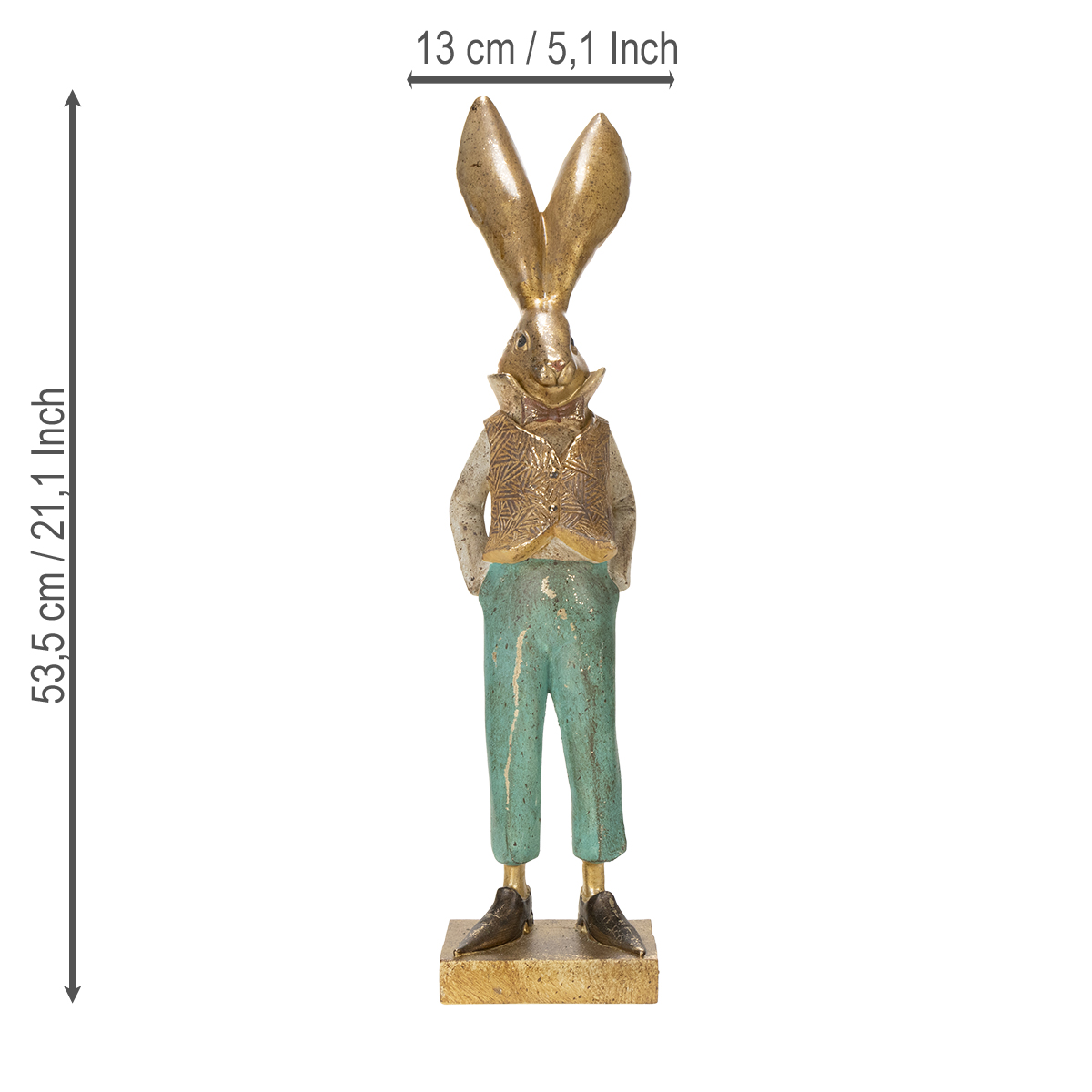 Procura uma decoração encantadora para dar um toque fresco e harmonioso à sua casa? Então, esta figura decorativa de coelho, com impressionantes 53 cm de altura, vai chamar a sua atenção imediatamente. Com o seu visual moderno e o seu traje cuidadosamente trabalhado, não só traz alegria de Páscoa, como também serve de peça decorativa elegante durante todo o ano. Imagine como este elegante coelho castanho e verde, feito de polystone de alta qualidade, dará um toque especial à sua mesa, aparador ou hall de entrada. Perfeito para iluminar os dias cinzentos de inverno, o seu acabamento detalhado torna-o um verdadeiro destaque – quase como se tivesse uma pequena história para contar. Torne a sua casa única e traga uma atmosfera alegre e elegante aos seus espaços!