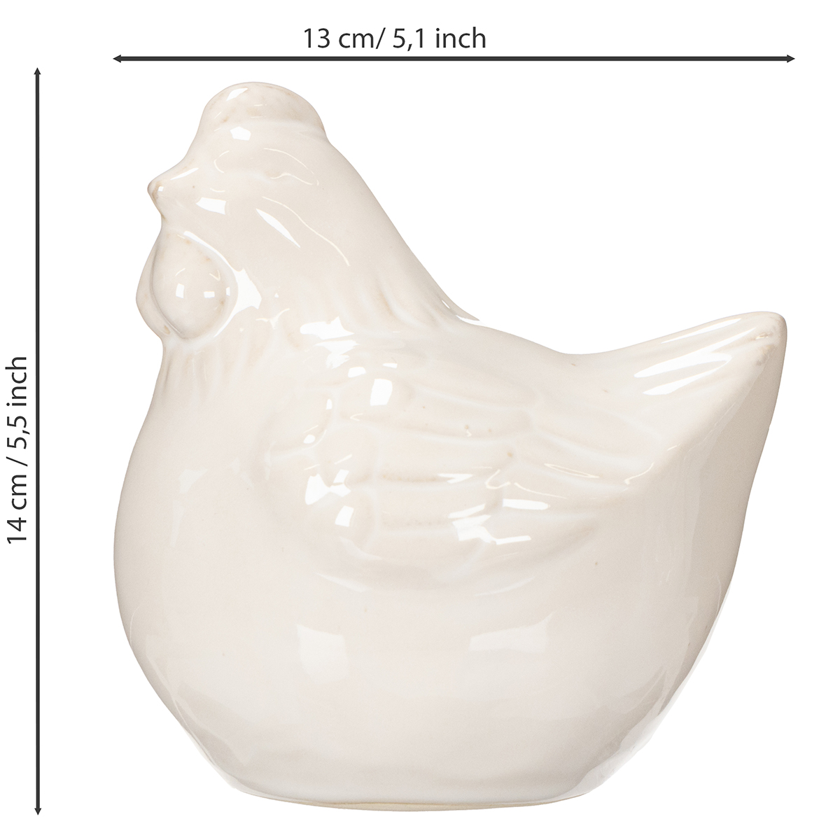Procura uma peça decorativa especial que dê um toque moderno e elegante à sua casa? A nossa estatueta de galinha com acabamento brilhante não só traz um toque de elegância rústica ao seu lar, como também cria um ambiente acolhedor e charmoso. Galinhas geralmente têm um ar rústico na decoração? Mas não com este modelo! A superfície branca brilhante da cerâmica de alta qualidade eleva as duas figuras – galo e galinha – a uma estética moderna, quase escultural. Seja no parapeito da janela, na lareira ou como parte de uma composição decorativa na mesa da sala de estar, este conjunto de duas figuras adapta-se perfeitamente a qualquer lugar. O esmalte brilhante, em particular, reflete a luz suavemente, conferindo à estatueta de galinha um aspeto elegante e sofisticado. Estas figuras de cerâmica são muito mais do que simples decoração – são uma expressão de bom gosto na decoração da sua casa!