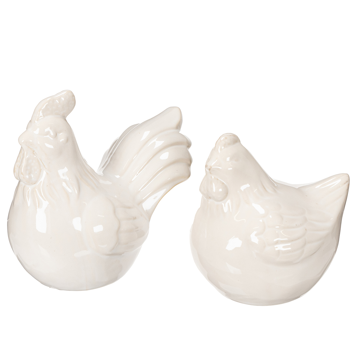- Quantidade: Conjunto composto por 2 figuras (galo e galinha)