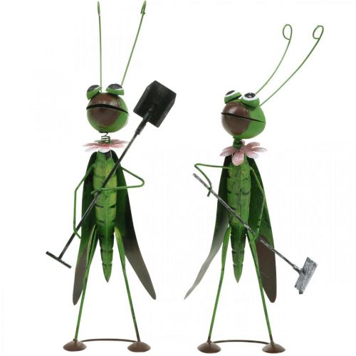 Estatueta de jardim de gafanhoto decoração de metal grilo com ancinho e pá H33cm conjunto de 2