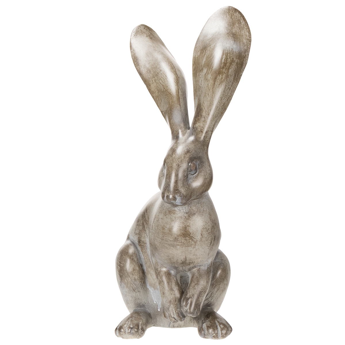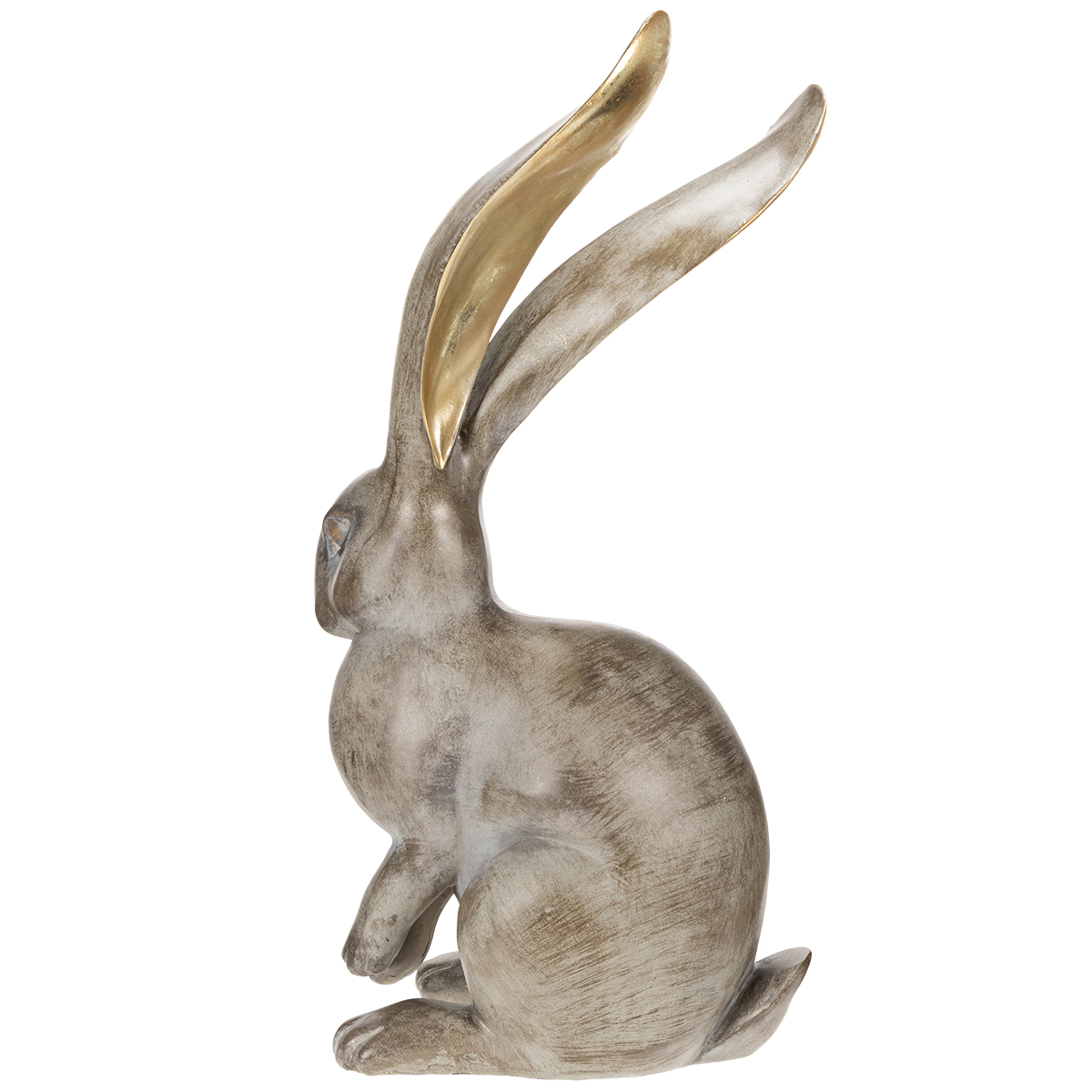 Seu material de polystone em tons suaves de marrom e cinza com um toque dourado combina harmoniosamente com diversos estilos, como o rústico, o moderno ou até mesmo o shabby chic. Imagine o coelho banhado de sol em um aparador ou adornando sua mesa com buquês de flores da primavera. Você criará uma atmosfera aconchegante de primavera num instante!