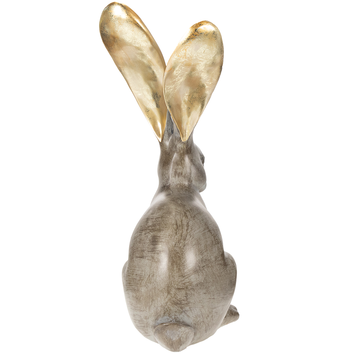 Por que esta estatueta de coelho é indispensável para a primavera e a Páscoa? Graças à combinação perfeita de design, material e funcionalidade. Com seus 52 cm de altura, o coelho atrai olhares de forma mágica, sem ser intrusivo. As orelhas douradas com brilho interno conferem um toque especial, perfeitas para criar um ambiente luxuoso. O material de polystone também é robusto e resistente às intempéries, tornando o coelho adequado não apenas para uso interno, mas também para varandas ou jardins.