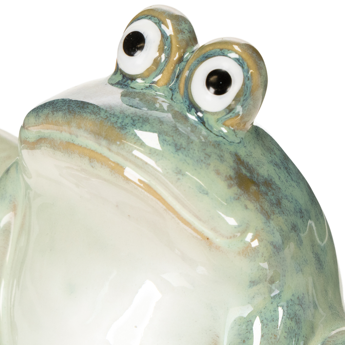 Estatueta decorativa de sapo em cerâmica, design detalhado, ideia de presente encantadora, 13 cm