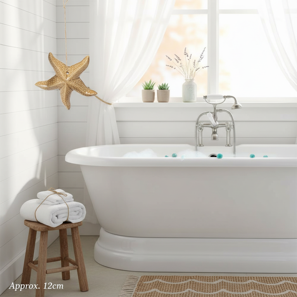 Estrela-do-mar de cerâmica como decoração suspensa – Elegância marítima para a sua decoração de verão.