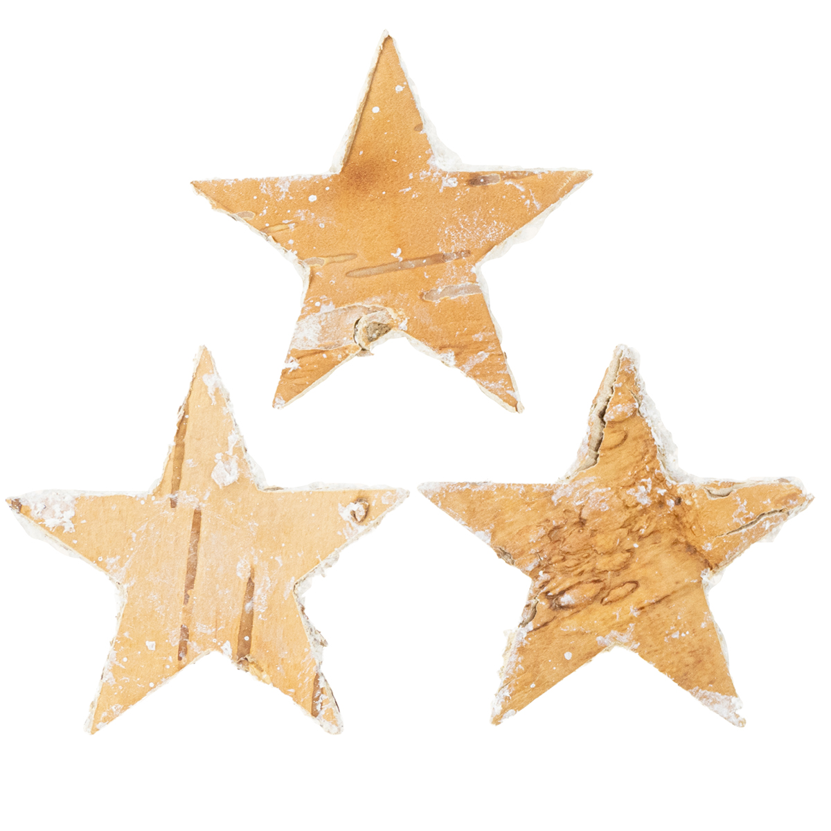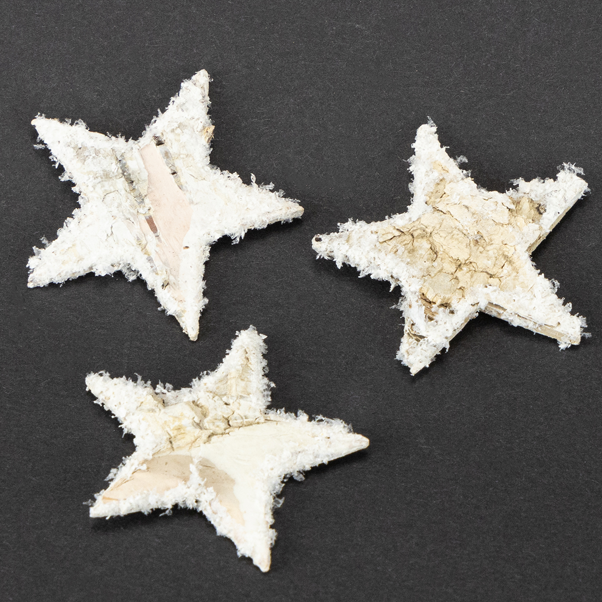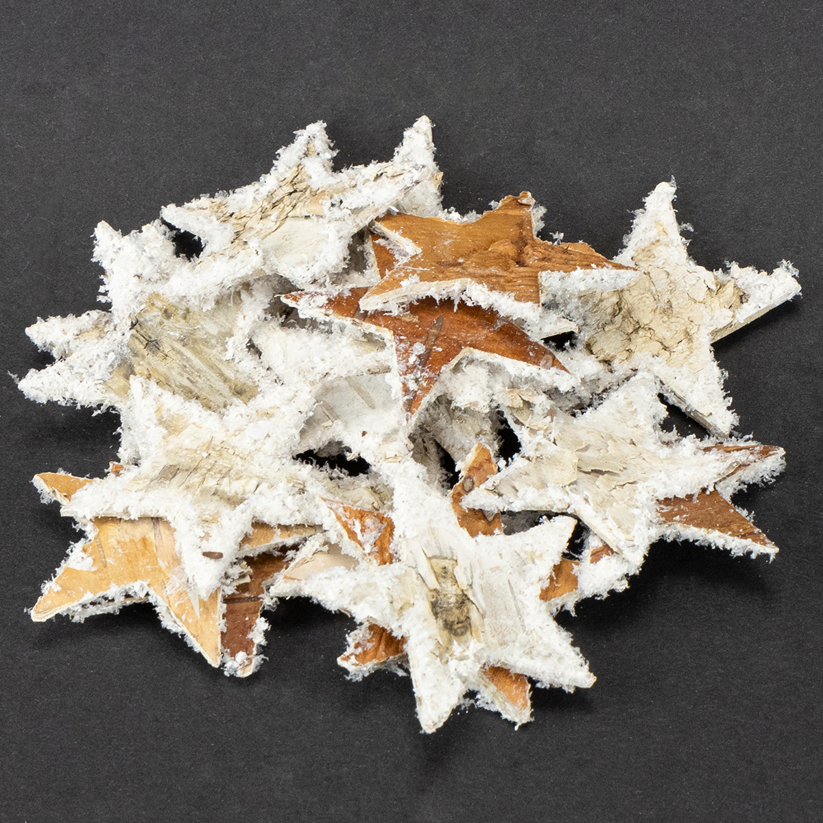 Estrelas de bétula, cobertas de neve, 4 cm, naturais, 60 peças