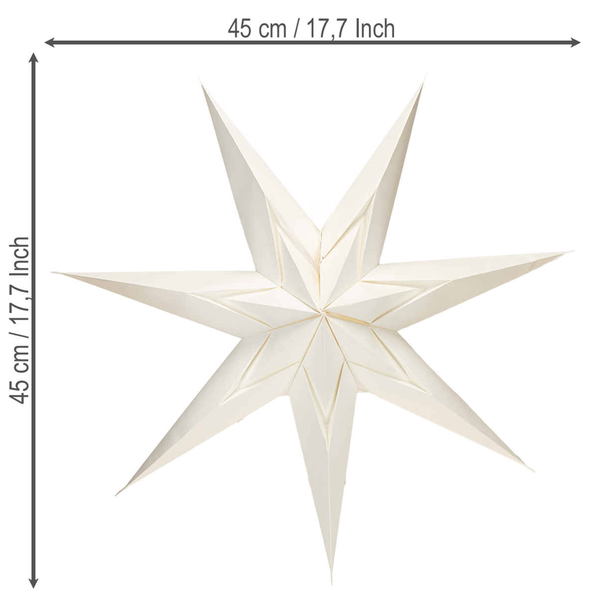 Estrelas de papel estilo escandinavo, estrela de Natal, creme e branco, 45 cm, 3 unidades
