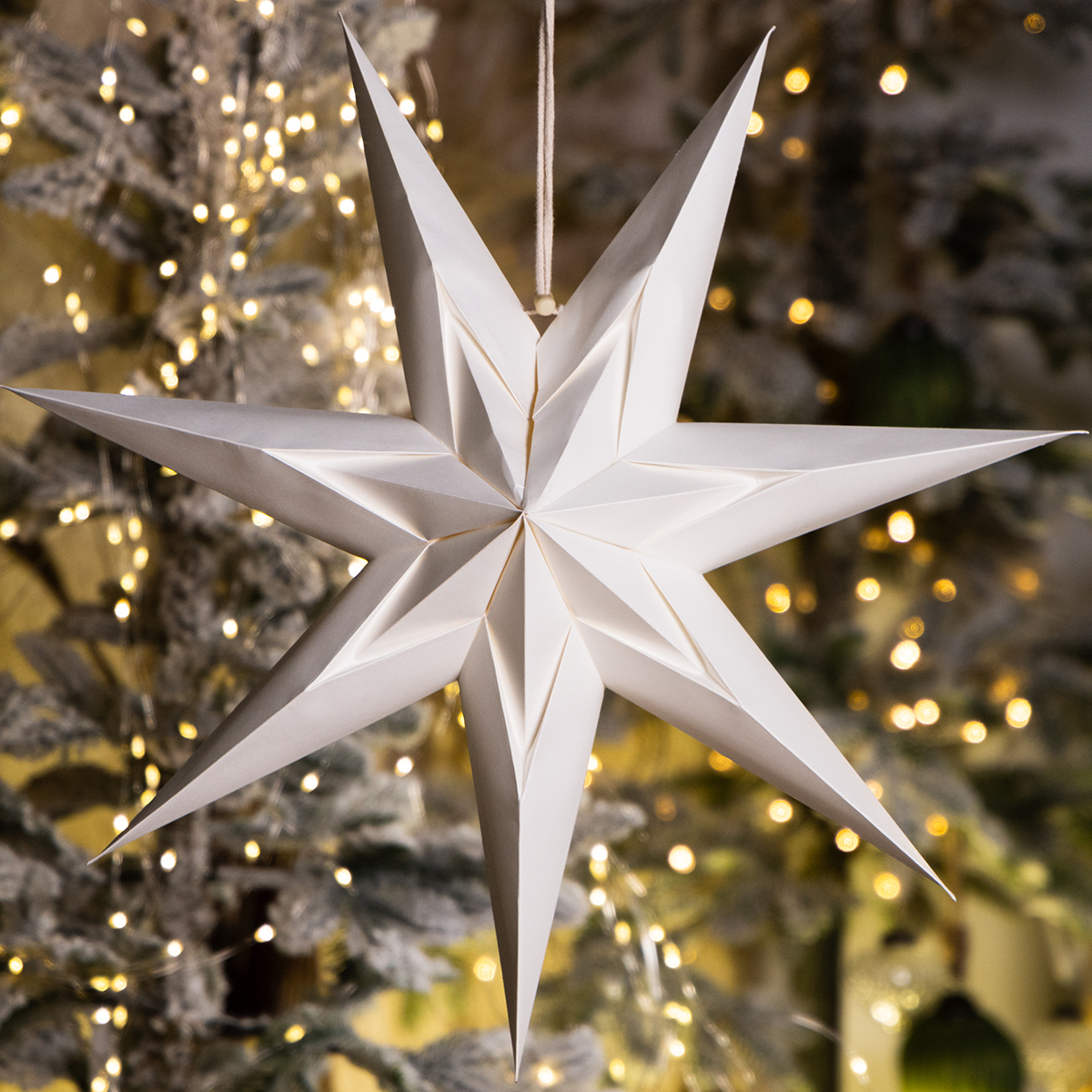 Estrelas de papel em branco creme – Decorações de Natal em estilo escandinavo com um toque especial de estrela.