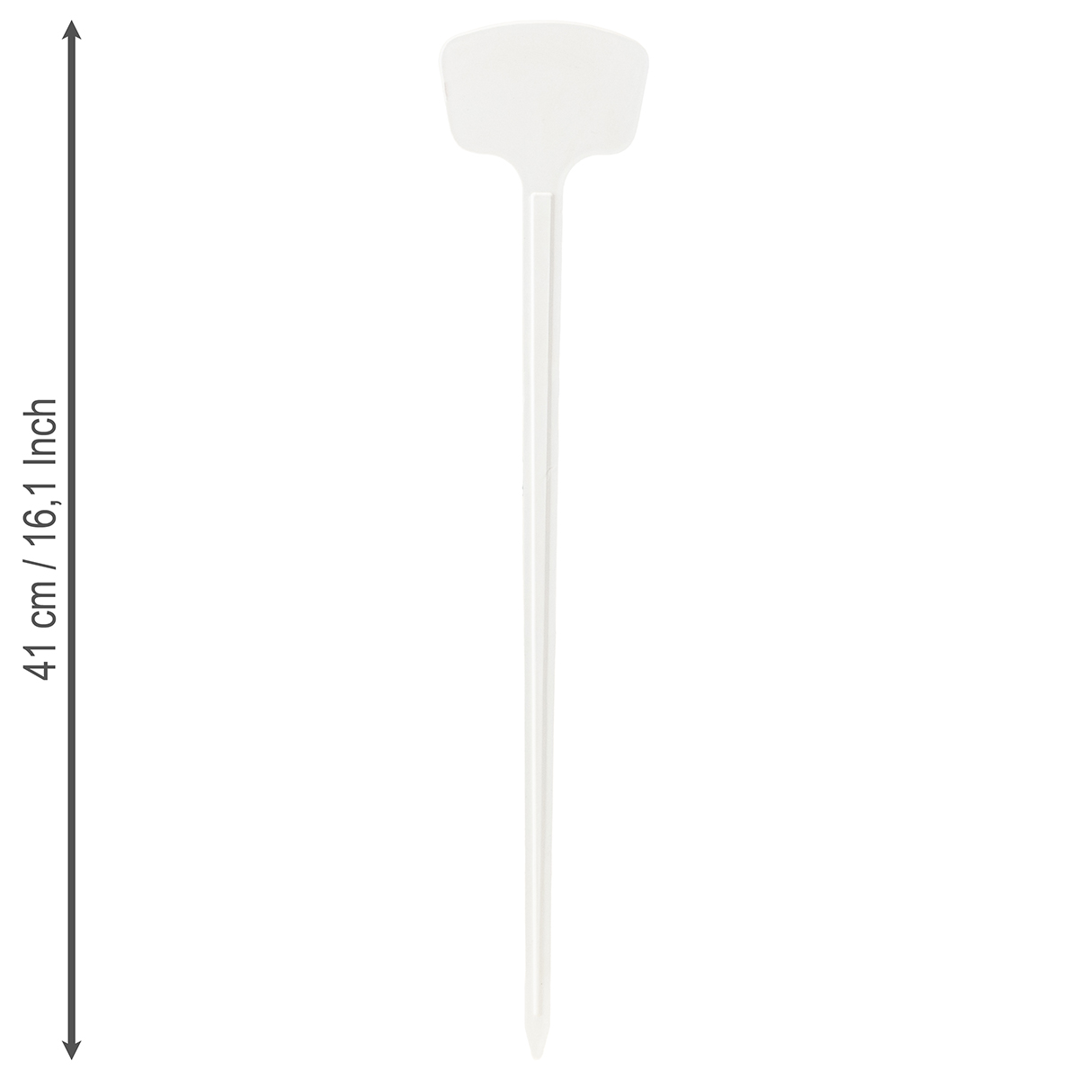 No geral, o sinal da planta tem cerca de 41 centímetros: a área para etiquetagem mede cerca de 80 por 50 milímetros e o comprimento do bastão é de cerca de 36 centímetros. Você pega o rótulo da planta em um pacote de 10 peças. Os floristas gostam de usar os plugues de flores de haste longa para a etiqueta de preço: simplesmente cole uma etiqueta de preço e coloque a etiqueta de preço no balde de flores ou plantador correspondente!