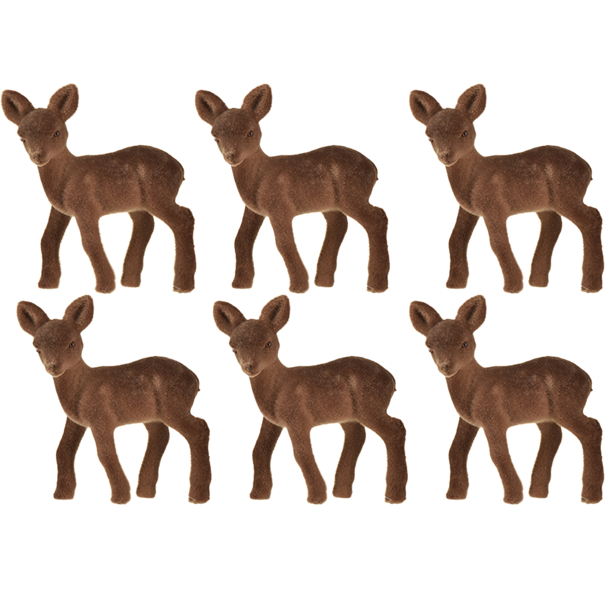 Figura decorativa veado fulvo flocado figuras de Natal marrons 10,5 cm 6 un