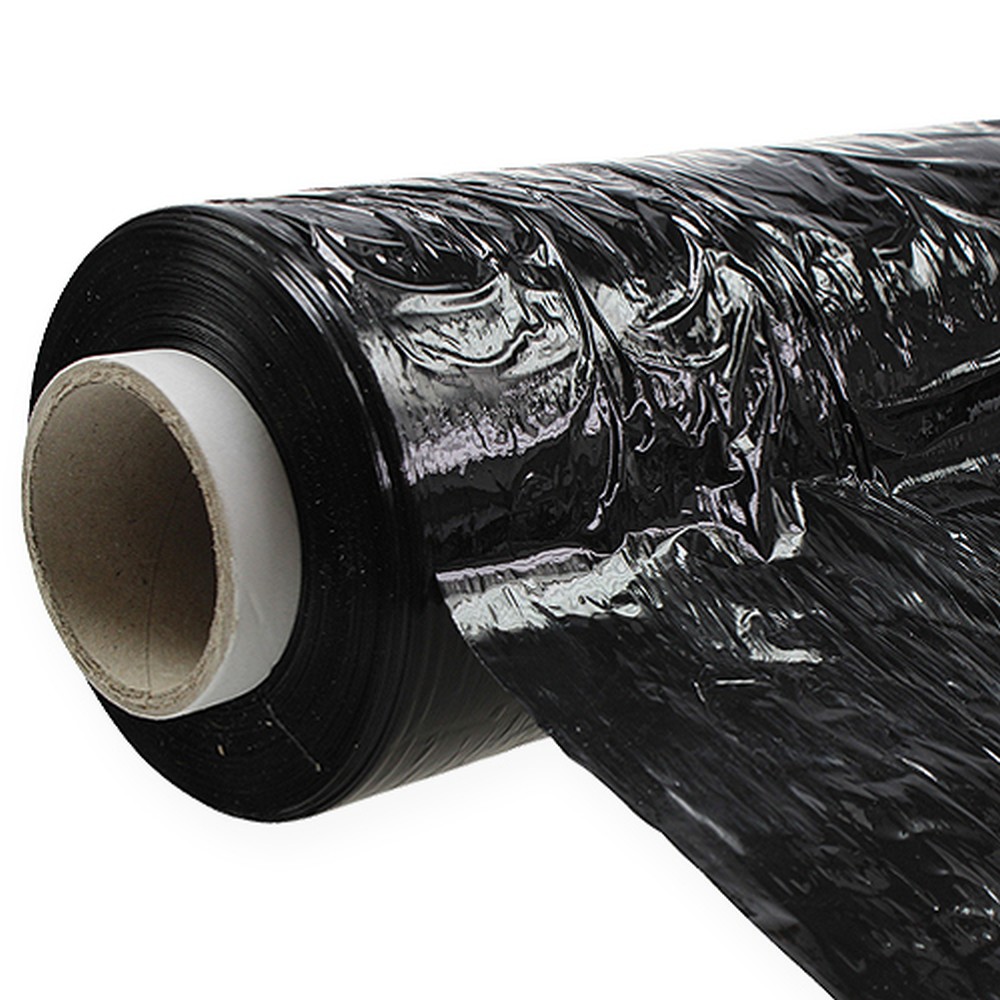 O filme stretch ou filme de embrulho na cor preta tem cerca de 260 metros de comprimento e é enrolado em um tubo de papelão. A folha tem uma largura de cerca de 50 centímetros e uma espessura de cerca de 20 mícrons.