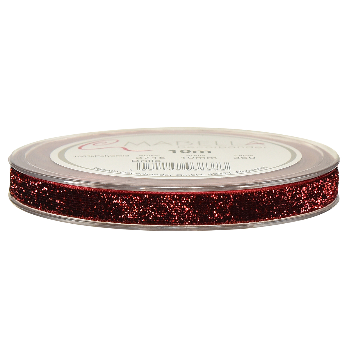 A combinação do vermelho escuro intenso com o brilho iridescente representa a clássica cor natalina que irradia harmonia e calor. Fabricada 100% em poliamida, esta faixa decorativa impressiona pela durabilidade e longa vida útil. O enrolamento em um prático carretel de plástico e a fixação com agulha de miçangas garantem fácil manuseio e processamento descomplicado em seus projetos artesanais.