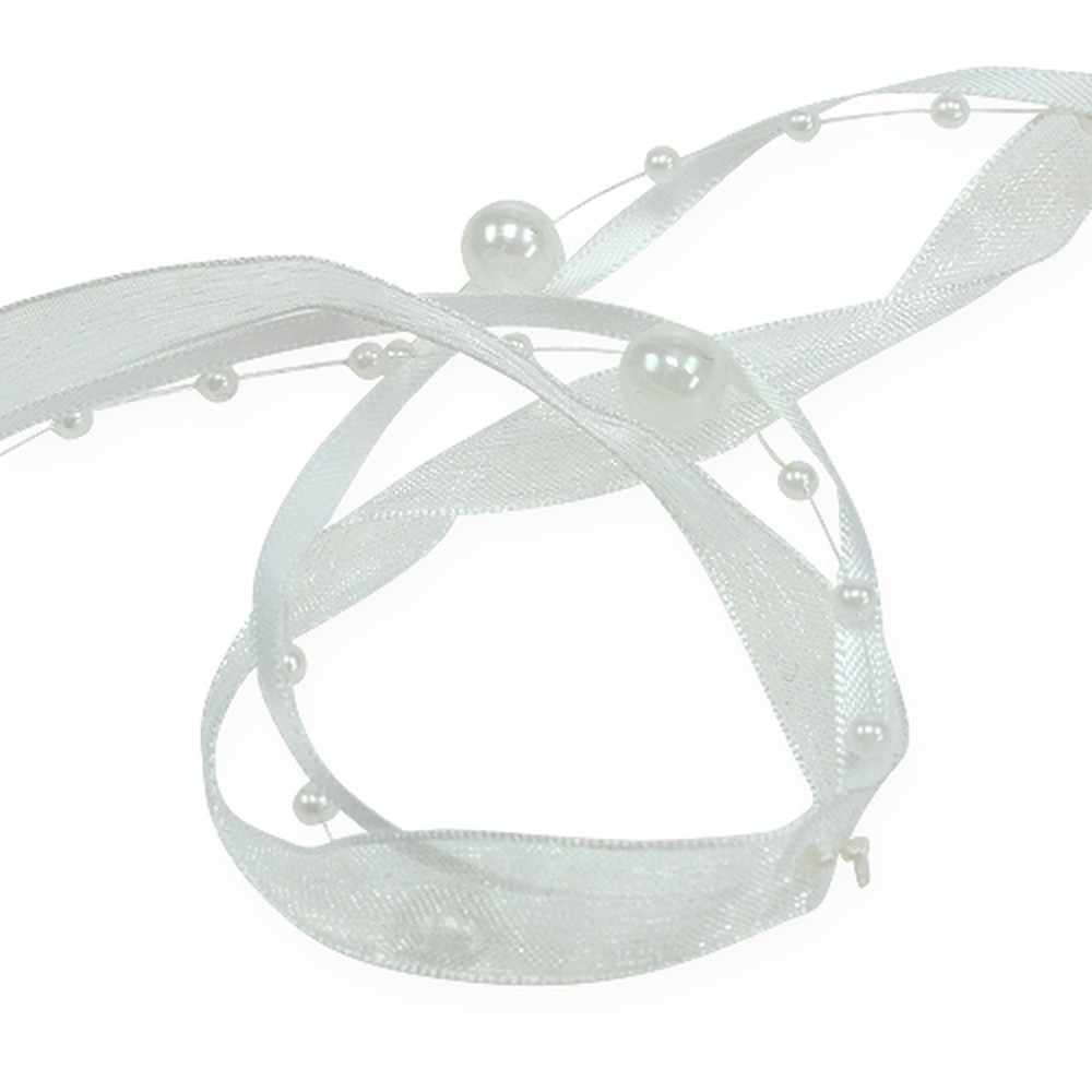 Mas você também pode usá-lo para um arranjo de casamento e, em seguida, colocá-lo sobre o arranjo de flores. Em geral, você pode usar a fita decorativa como uma espécie de tema recorrente em toda a decoração do casamento e usá-la, por exemplo, para amarrar coberturas de mesa, embrulhar os vasos de flores das plantas ou usá-la para decorar a parede. Você também pode trabalhar a linda fita de pérolas nos vestidos da florista e usá-la para decorar com amor o buquê de casamento!