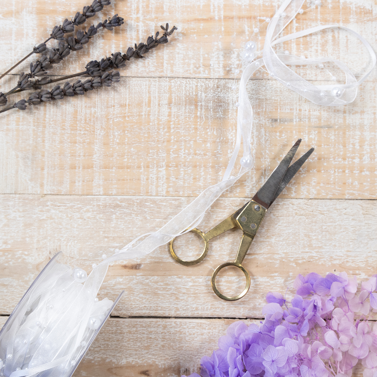 Mas você também pode usá-lo para um arranjo de casamento e, em seguida, colocá-lo sobre o arranjo de flores. Em geral, você pode usar a fita decorativa como uma espécie de tema recorrente em toda a decoração do casamento e usá-la, por exemplo, para amarrar coberturas de mesa, embrulhar os vasos de flores das plantas ou usá-la para decorar a parede. Você também pode trabalhar a linda fita de pérolas nos vestidos da florista e usá-la para decorar com amor o buquê de casamento!